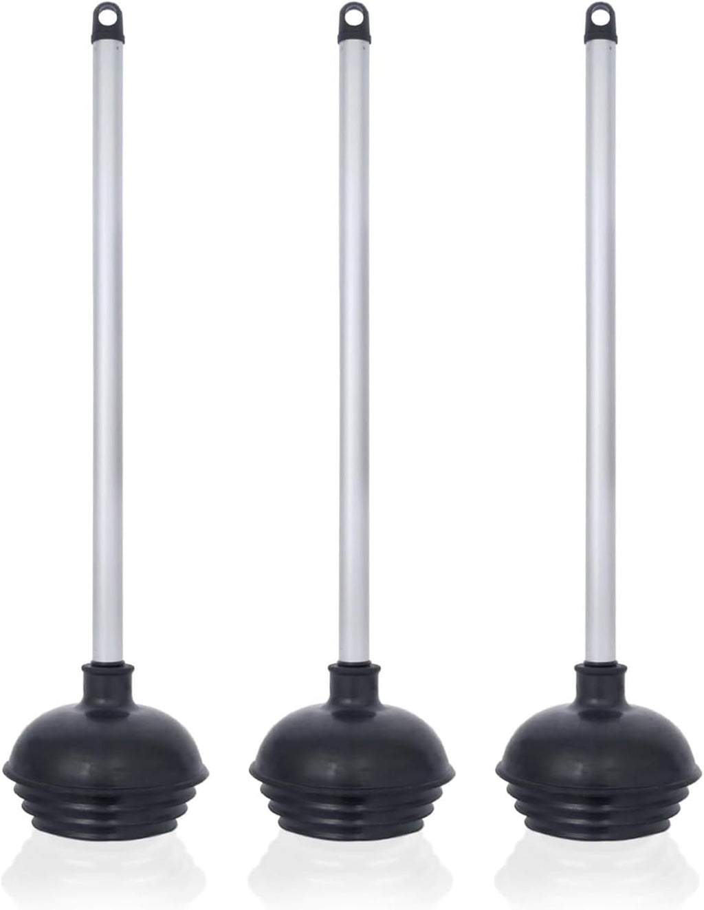 • [PATENTED]: Each toilet plunger in this triple pack has a unique 4-step level suction cup that fits securely in all different types of toilet bowls and/or sizes of toilet drain openings to make easy work of the toughest clogs.