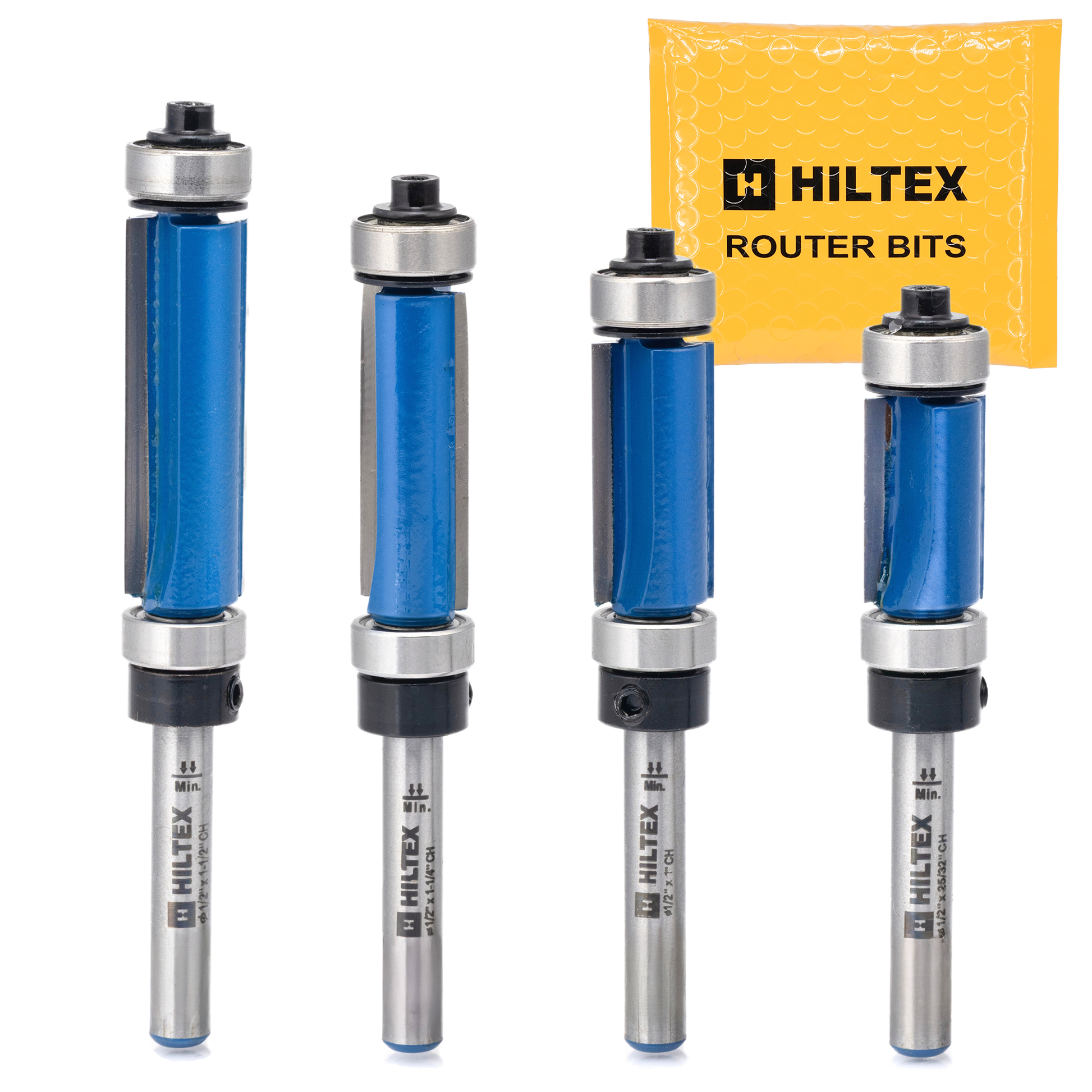 Flush Trim Router Bit Set – Top & Bottom Bearing, 1/4” Shank (4-Piece)
