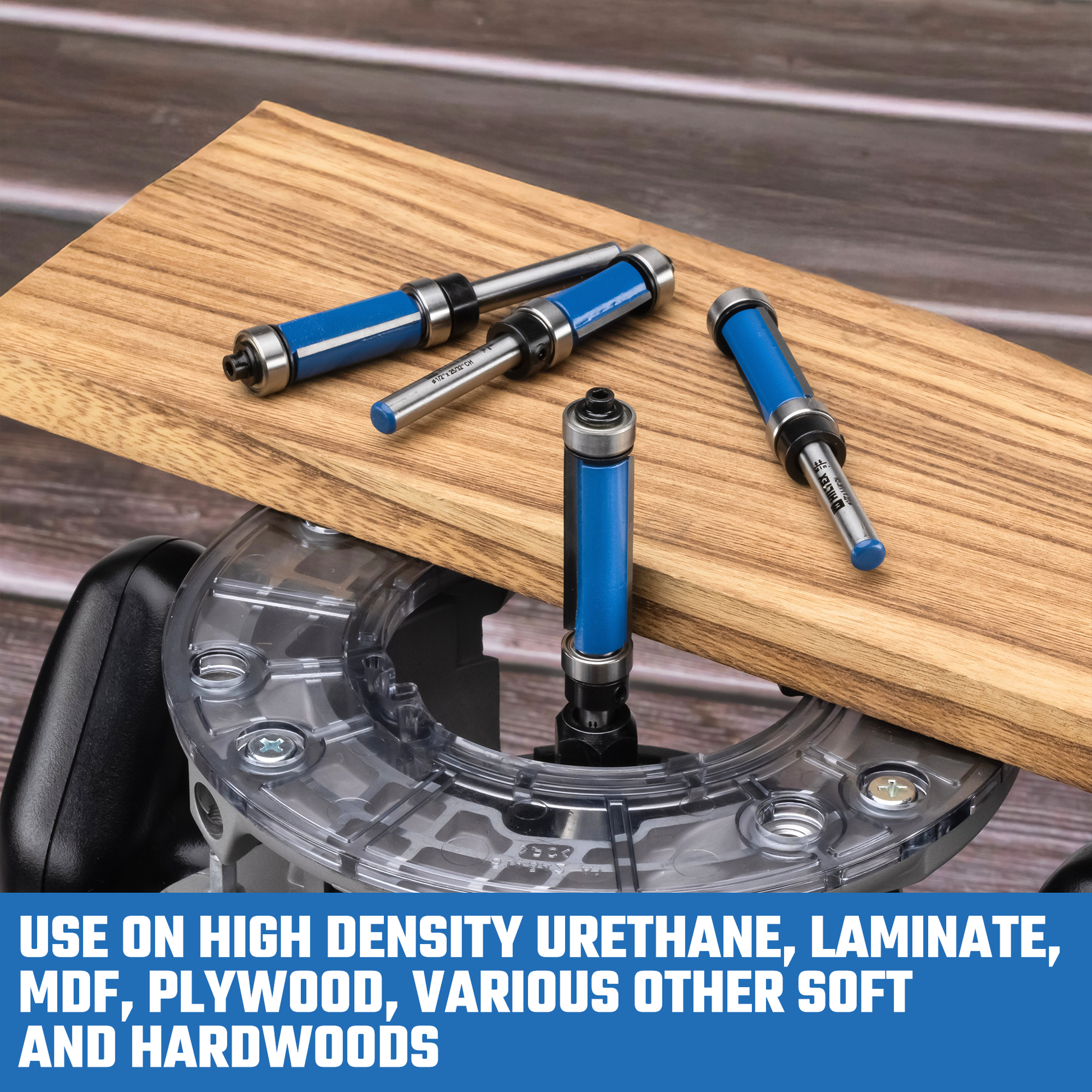 Dual-Bearing Flexibility Top and bottom bearings on each bit give you the choice of referencing from above or below the workpiece. Ideal for pattern routing, template work, and trimming overhanging material.