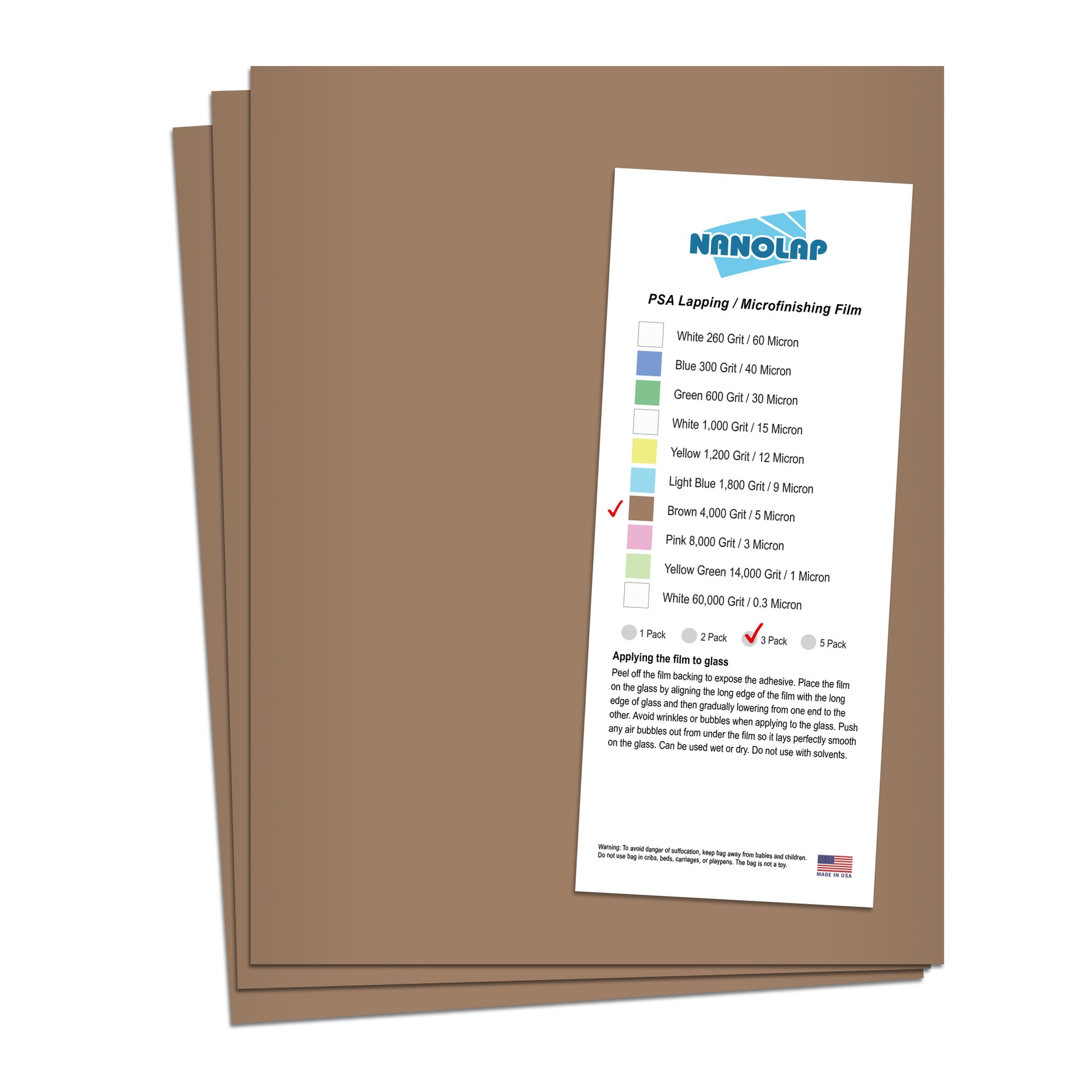 NANOLAP PSA Lapping Film 5 Micron (4,000 Grit) Adhesive Polishing Paper (3-Piece)