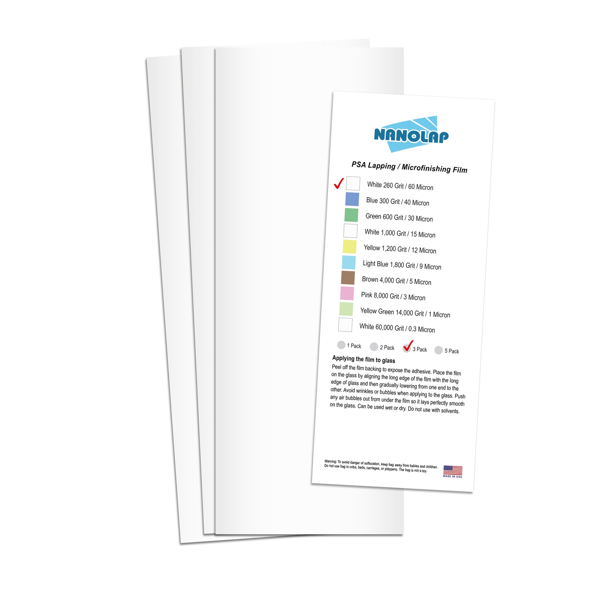 NANOLAP PSA Lapping Film 60 Micron (260 Grit) Adhesive Polishing Paper (3-Piece)