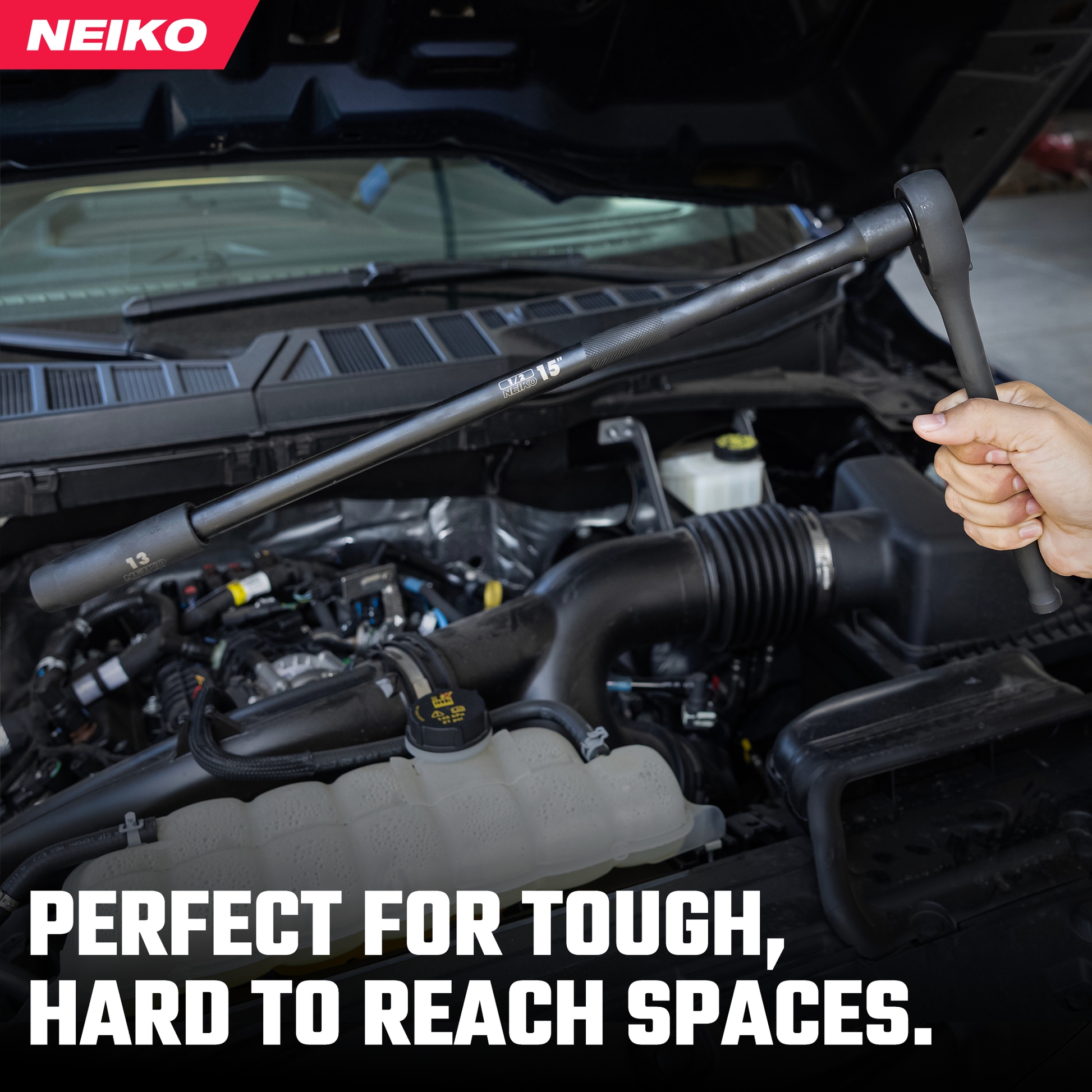 The NEIKO 00248A 1/2-Inch-Drive Impact Extension-Bar Set is the perfect solution for reaching and tightening fasteners in hard-to-access areas. Designed for use on cars, bicycles, and other mechanical applications, this impact socket extension set includes four different bar lengths—3-inch, 5-inch, 10-inch, and 15-inch—to provide maximum versatility. Each piece is constructed from premium chrome vanadium (CrV) steel for superior durability and strength. The high-visibility laser-etched size markings make it easy to identify the right extension at a glance. These long-reach wrench-extender bars are ideal for extending air, electric, and pneumatic impact wrenches, allowing for effortless access to lug nuts, bolts, and other fasteners in tight spaces. A spring-loaded ball detent ensures secure socket attachment while allowing for quick and hassle-free removal. Whether you're a professional mechanic or a DIY enthusiast, the NEIKO 1/2-inch impact extension set is a must-have addition to your tool collection, delivering reliability and performance for every job.