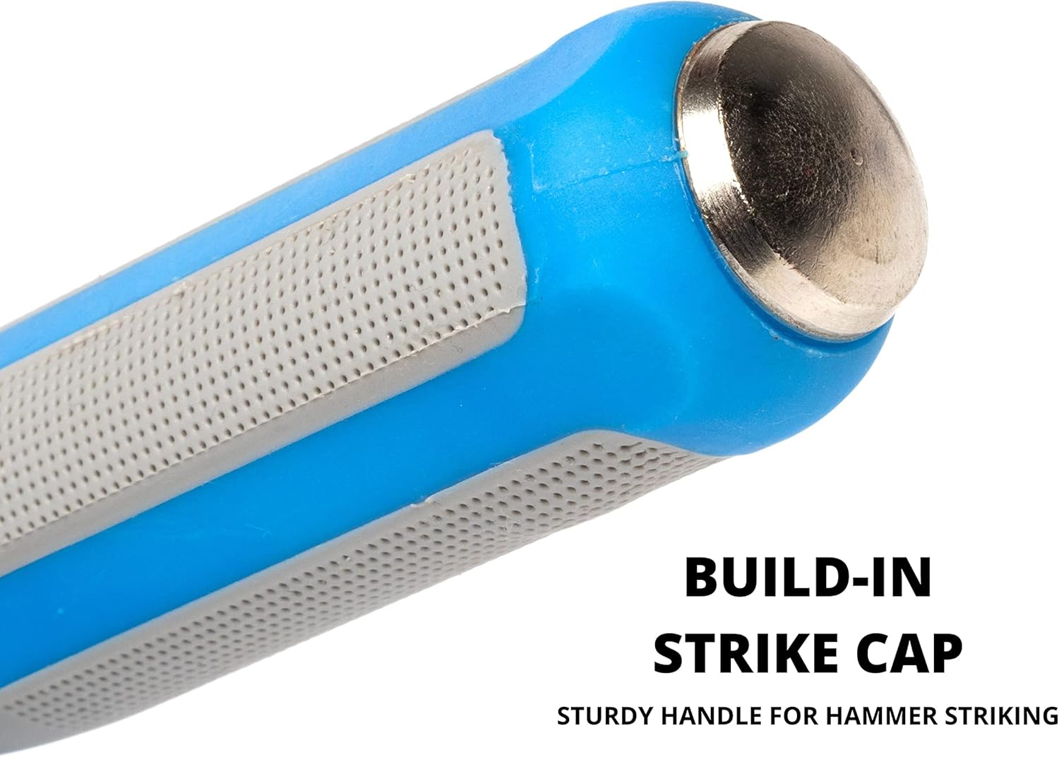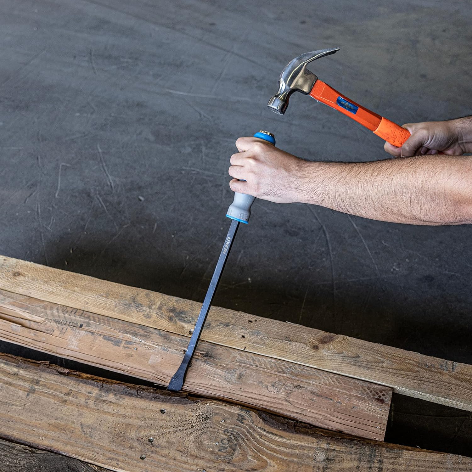 Go-Through Striking Cap A steel cap runs through the handle and contacts the metal bar directly, so you can strike with a hammer to drive the tip without damaging the handle. This turns each pry bar into a persuader when leverage alone isn't enough.