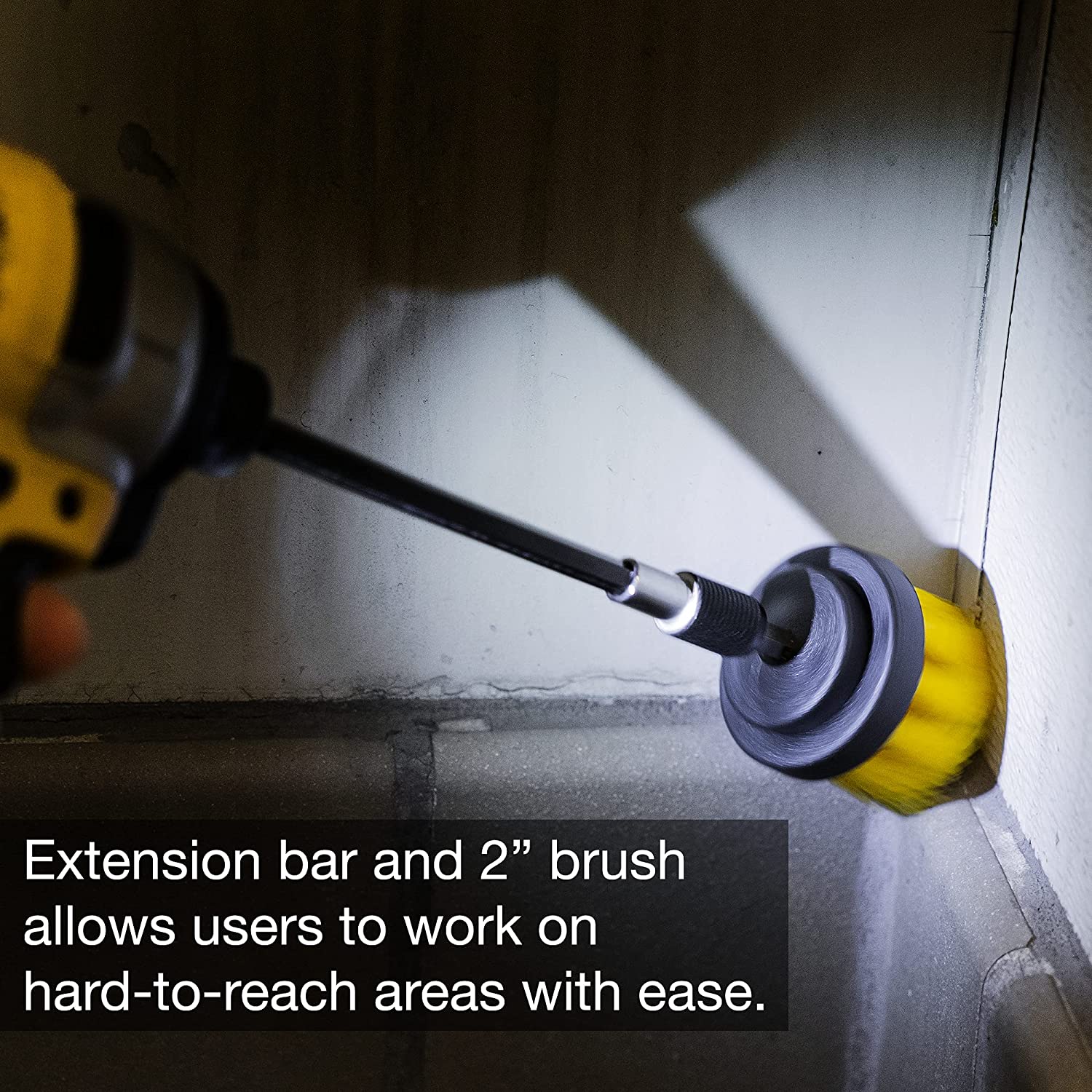 - EXTRA-LONG DRILL SCRUB BRUSH: Use the included 6-inch extended-reach attachment to deep clean hard-to-reach areas, such as bathroom-floor corners or small areas on vehicles. These brush tools are compact enough to spot clean anywhere you need.