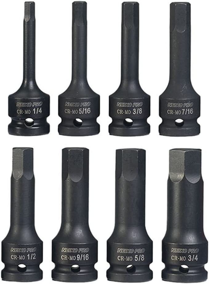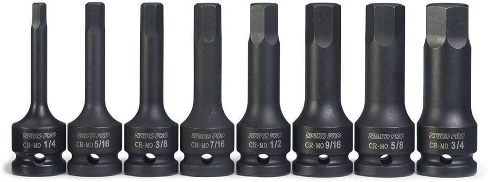 The NEIKO 01137B 1/2-Inch-Drive Allen Socket Set gives you extra power and precision when you need to apply or remove screws, bolts, and other fasteners. Each bit is made from durable drop-forged chrome molybdenum steel and features a black phosphate coating for added longevity and protection against rust and corrosion. The powerful sockets will withstand extreme torque to handle even the toughest fasteners.