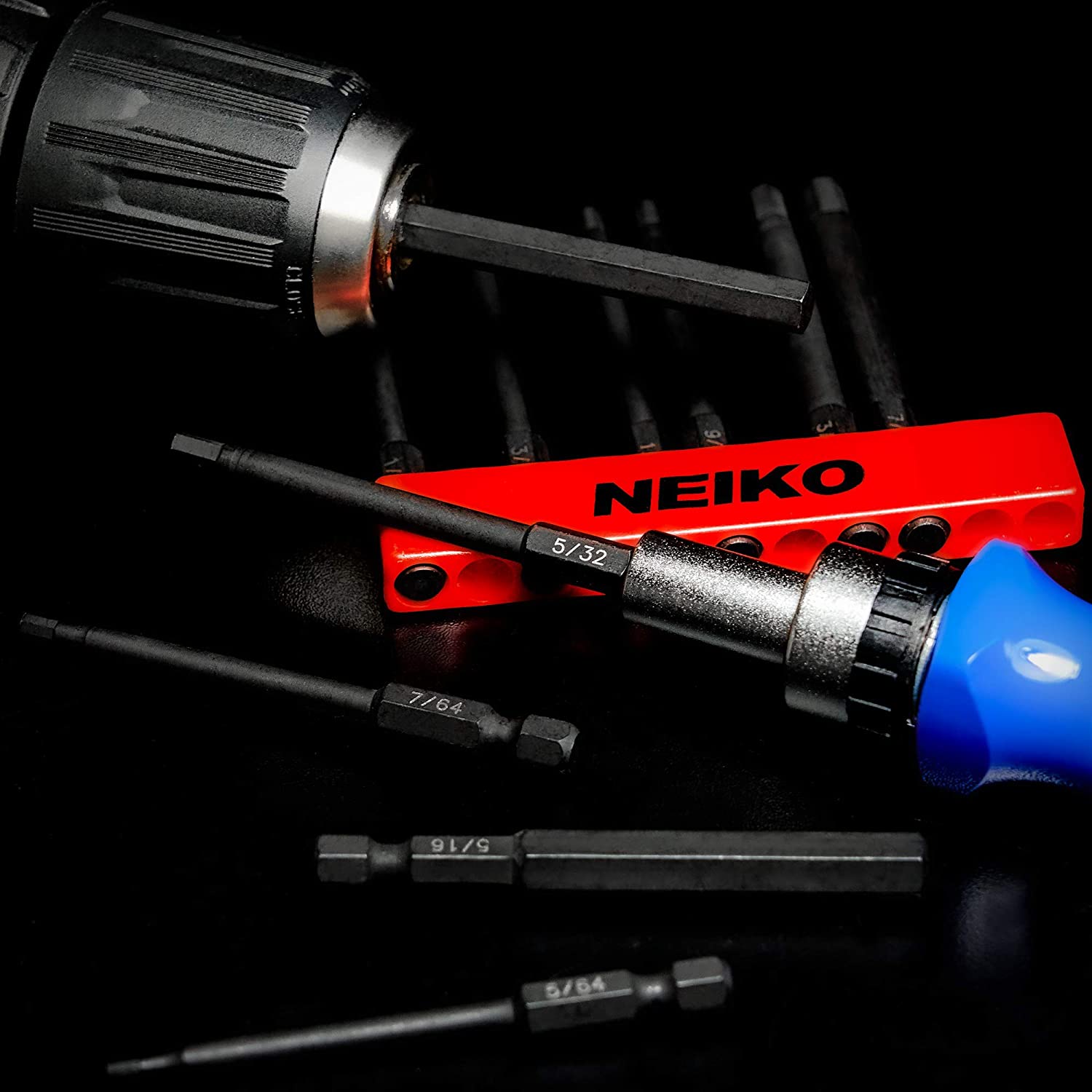 The Neiko 01147A Magnetized Hex Head Bit Set conveniently comes with 11 pieces of various SAE sizes to make sure that you have the perfect fit for all types of jobs - whether its furniture building, industrial work, or DIY projects, this hex screwdriver bit set is sure to have what you need.
