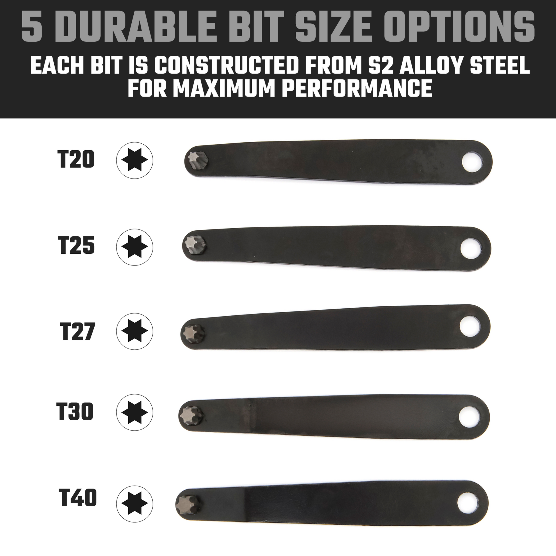 - T20, T25, T27, T30, T40 offset Torx drivers