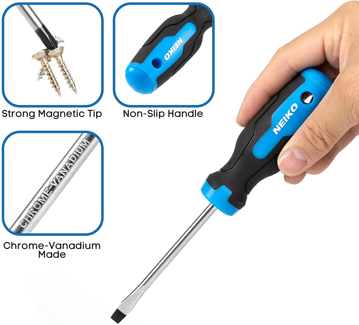 Heat-Treated CrV Steel Hardened chrome vanadium steel prevents stripped or rounded screw heads and holds up through years of daily use.