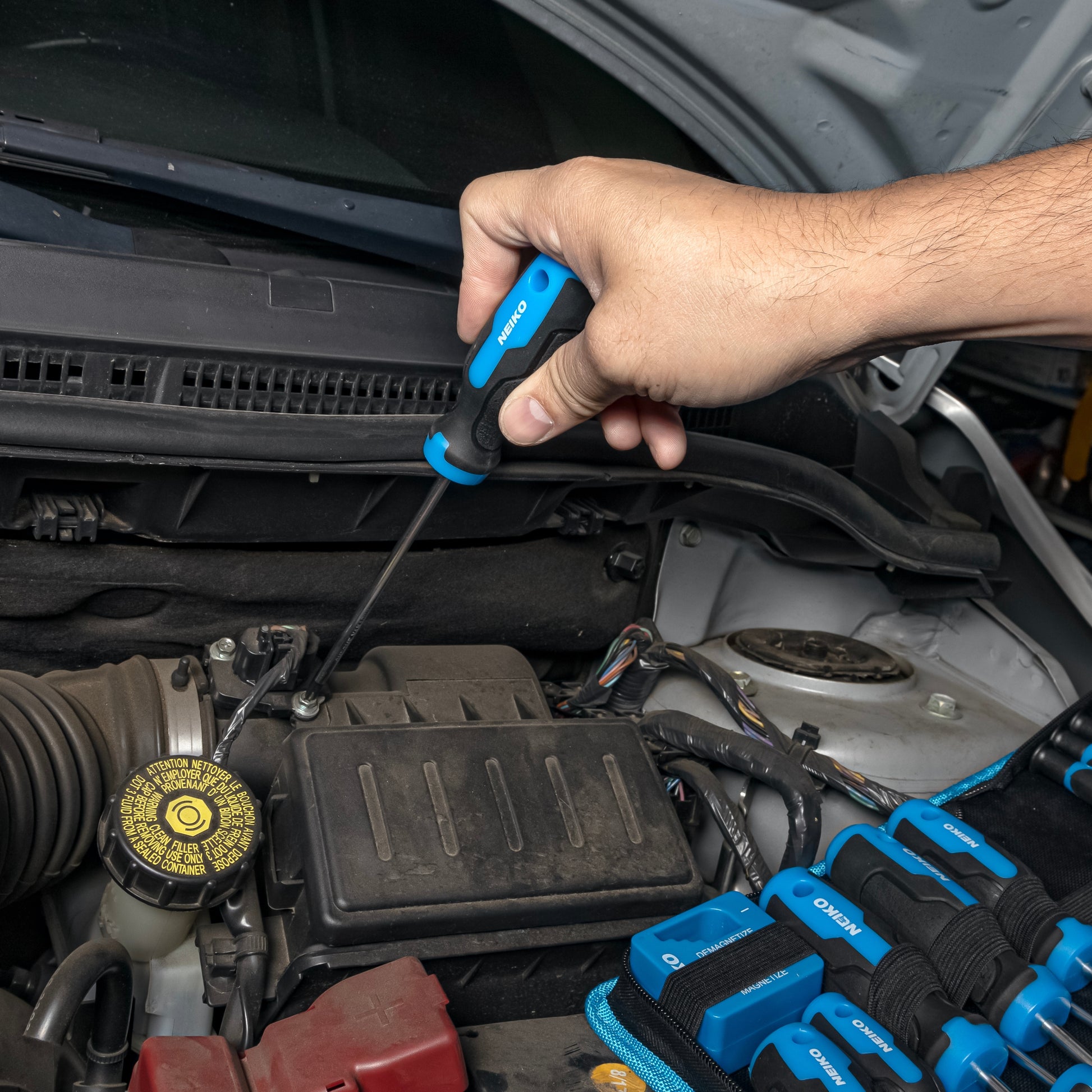 Introducing the NEIKO 01379A Master Screwdriver Set, a 32-piece magnetic precision screwdriver set that includes Phillips, flathead, slotted, and Torx drivers, all neatly organized in a convenient screwdriver case. This best screwdriver set is designed for precision work, with each screwdriver being magnetic for easy handling and featuring a comfortable grip for optimal control. The set also includes a magnetizer and demagnetizer, allowing you to customize the magnetic strength of your screwdrivers. Upgrade your tool collection with this high-quality precision screwdriver set with case, perfect for professionals and DIY enthusiasts alike. Get your hands on the NEIKO 01379A Master Screwdriver Set and experience the convenience and precision it offers. Inlcudes: 5Pcs Phillips screwdrivers #0x75mm, #1x100mm, #1x125mm, #2x100mm, #2x38mm 5Pcs Flathead screwdriver: 3.0x75mm, 4.0x100mm, 5.0x125mm, 6.0x100mm, 6.0x38mm 22-piece Precision screwdrivers set include: - 6 Pcs Slotted screwdrivers: 1.0mm, 1.2mm, 1.5mm, 2.0mm, 2.4mm, 3.0mm - 6Pcs Phillips screwdrivers: 0.8mm, 1.2mm, 1.5mm, 2.0mm, 2.5mm, 3.0mm - 9Pcs Torx screwdrivers: T2, T3, T4, T5, T6, T7, T8, T9, T10 - 1Pcs Magnetizer.
