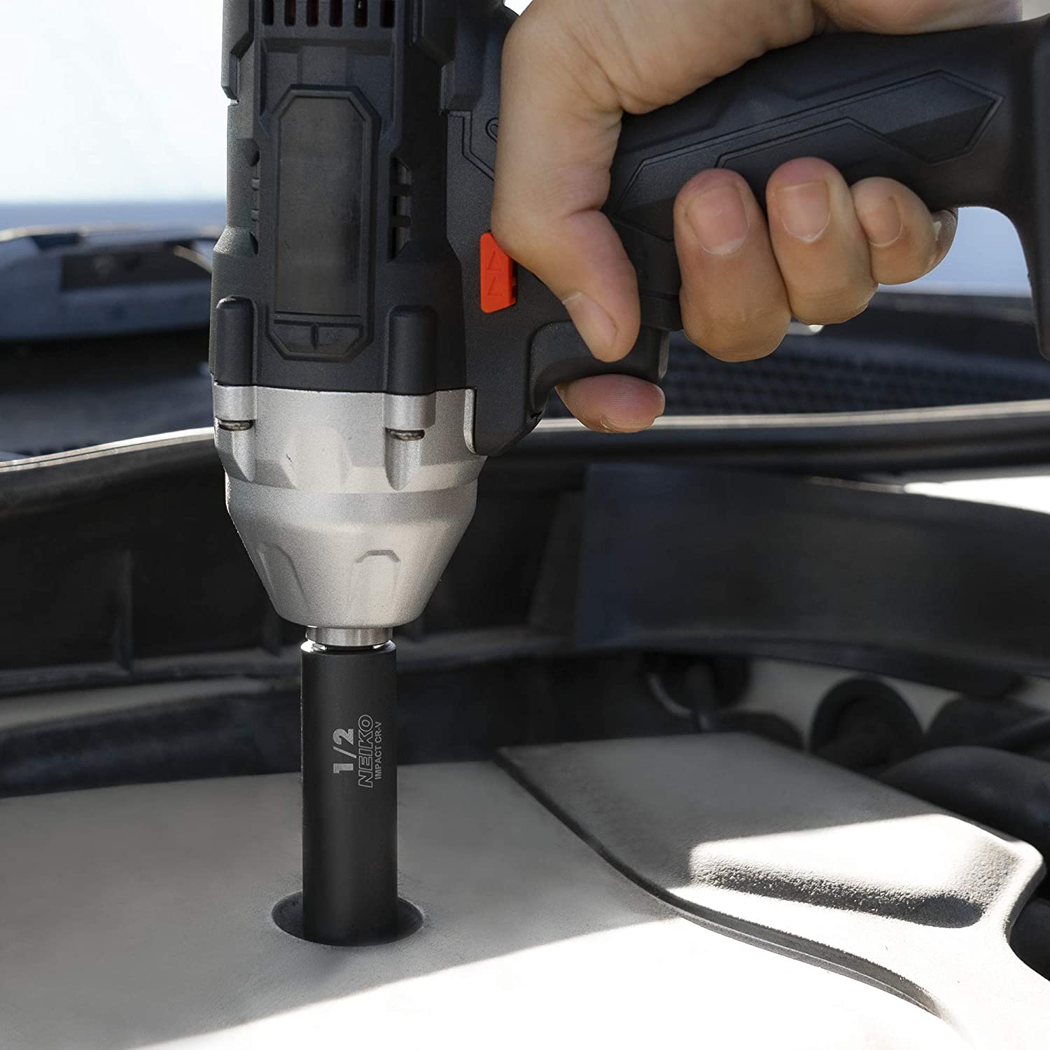 NEIKO presents our 3/8-inch-drive standard and deep SAE impact socket set. It includes standard and deep metric sockets with easy-to-read laser-etched size markings for quick identification. Each socket is protected from oil, dirt, and grease thanks to a phosphate coating and is constructed from premium CrV steel for maximum life and durability. With a 6-point hex-socket design to protect from round off and other damage, each socket can be used with complete confidence.