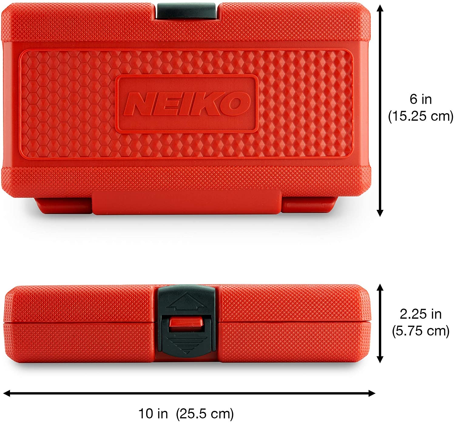 With just the right number of sockets, this NEIKO socket set is ideal for quick jobs and more intense builds. It comes in a convenient blow-molded storage case that keeps the sockets securely in place and allows for easy organization, quick access, and easy travel to and from the jobsite. Whether you need this high-quality socket set for housing construction or automotive work, it will help you get the job done quickly and efficiently for years to come. When it comes to tools you need, NEIKO has your back.