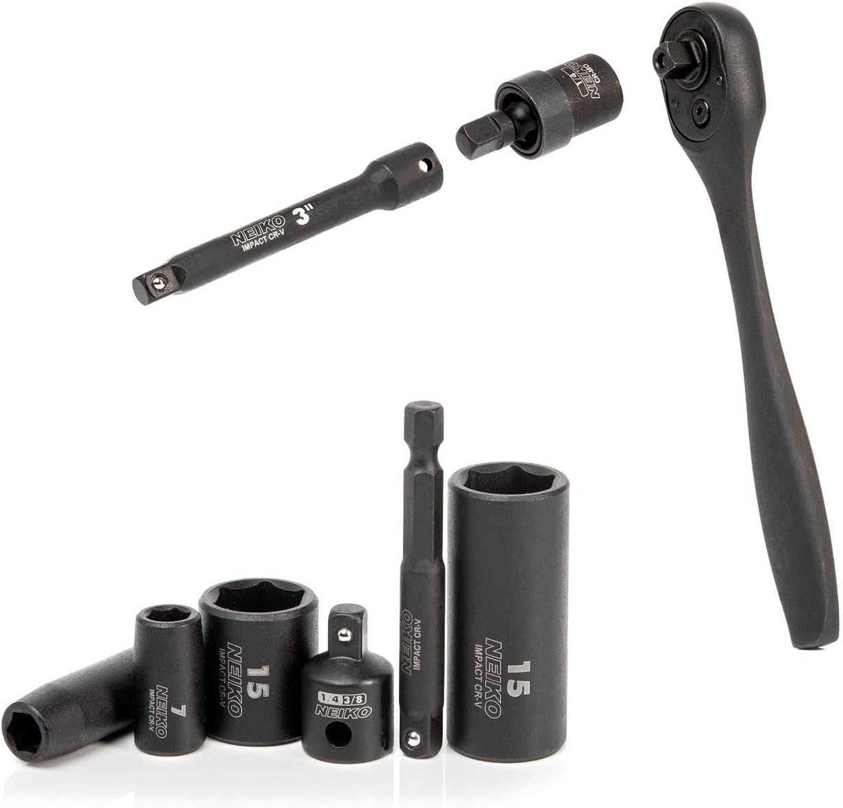 NEIKO presents 02436A our 1/4-Inch-Drive Complete Impact Socket Set with standard and metric sockets! If you’re looking for an automotive tool set because you lost your 10mm like everyone else this set comes with both a deep 10mm and a standard 10mm. This mechanic set includes both deep and standard SAE and metric sockets with easy-to-read laser-etched markings for quick identification in your toolbox. Each socket is protected from oil, dirt, and grease thanks to a phosphate coating and is constructed with drop-forged premium CrV steel for maximum life and durability. With a 6-point hex socket design to protect from round off and other damage, each socket in this socket extension set can be used with complete confidence.Socket-Adapter Set is perfect for use with power drills, ratchet handles, impact drivers, and other heavy-duty tools! These handy tool accessories are impact rated to meet your project requirements. Each extender is designed to work well with both hand tools and impact tools. Additionally, each set comes with a 1/4-inch universal joint and a 3/8-to-1/4-inch reducer. It also comes with a blow-mold socket case that has an individual space for each piece. Secure levers on the case prevent it from opening while you are traveling from jobsite to jobsite. Whether you need this high-quality socket set for use on a housing construction site or for an automotive mechanic job, it will help you get the job done quickly and efficiently for years to come. Includes: 1 x 3/8” Female to 1/4” Male Reducer1 x Hex Drive Socket Adapter14 x Metric Socket: 4mm, 4.5mm, 5mm, 5.5mm, 6mm, 7mm, 8mm, 9mm, 10mm, 11mm, 12mm, 13mm, 14mm, 15mm14 x Deep Metric Socket: 4mm, 4.5mm, 5mm, 5.5mm, 6mm, 7mm, 8mm, 9mm, 10mm, 11mm, 12mm, 13mm, 14mm, 15mm 10 x SAE Socket: 3/16", 7/32", 1/4", 9/32", 5/16", 11/32", 3/8", 7/16", 1/2", 9/16"10 x Deep SAE Socket: 3/16", 7/32", 1/4", 9/32", 5/16", 11/32", 3/8", 7/16", 1/2", 9/16"