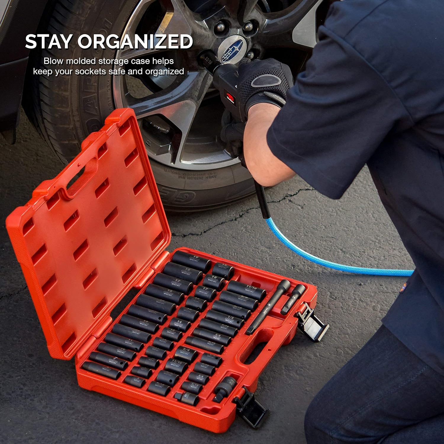 - 40× 3/8" Drive Sockets (SAE & Metric, Deep & Standard)