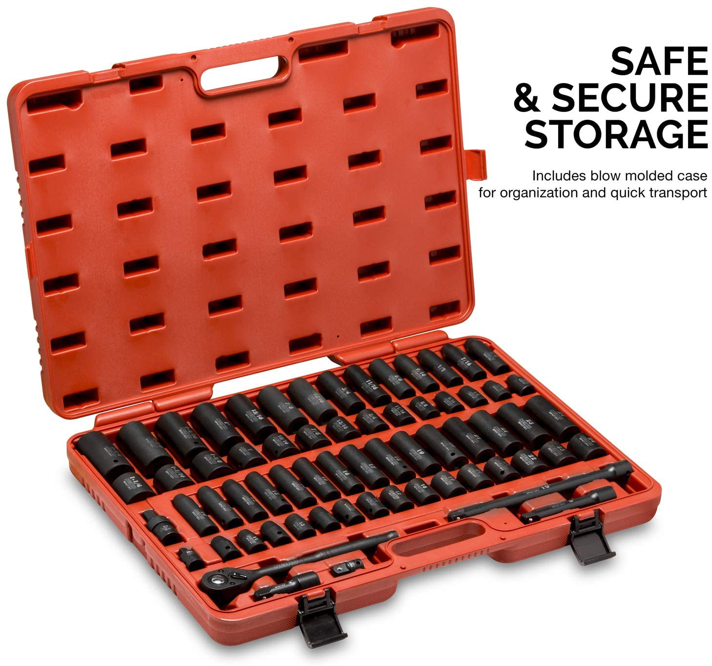 1/2" Drive Master Impact Socket Set — SAE & Metric, Deep & Shallow (65-Piece)