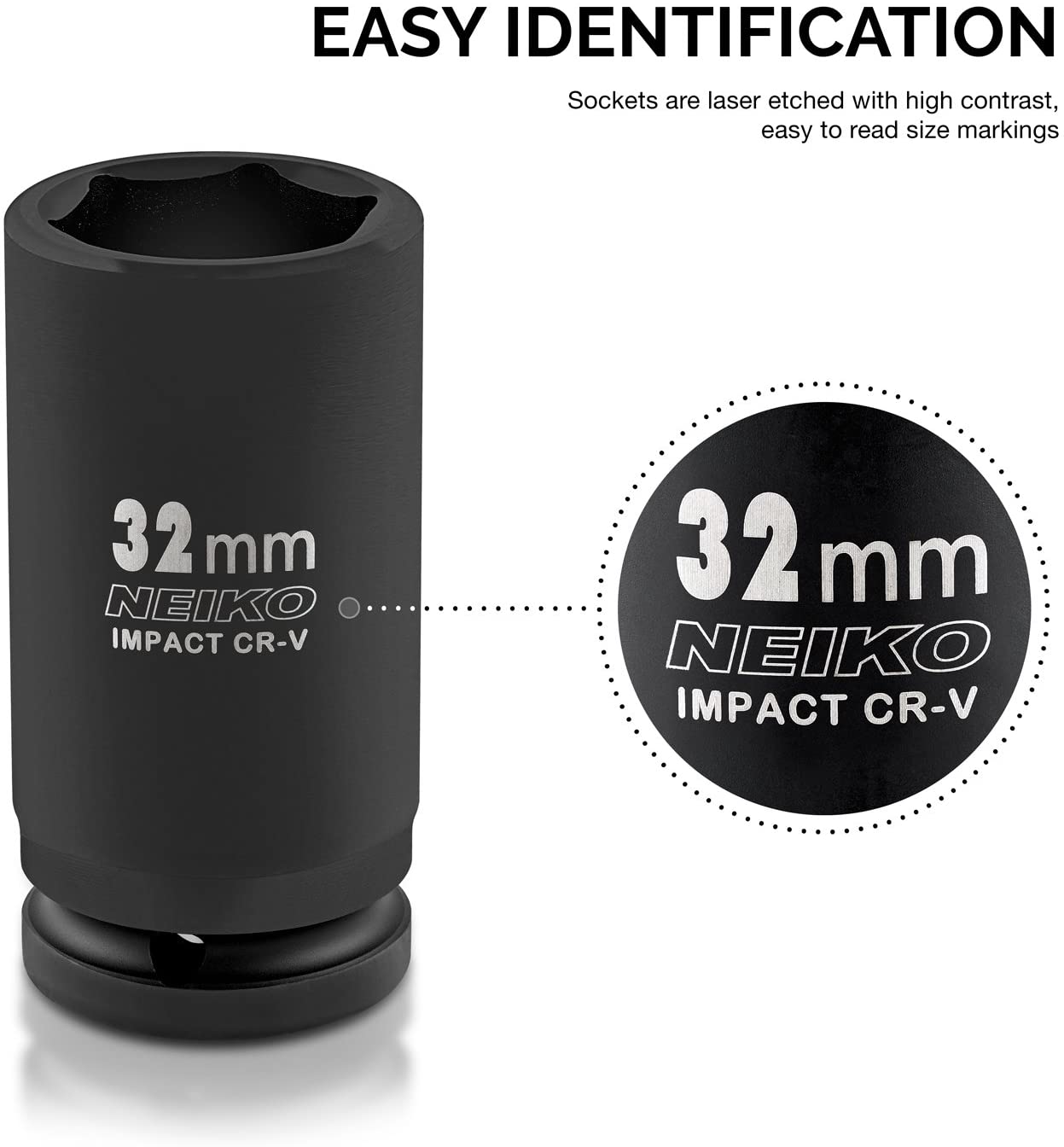 - LARGE SOCKET: This ¾” impact socket set is designed for use with impact wrenches. A set of 8 high-torque, 6-point Metric sockets with ¾ inch drive, each jumbo socket is used to remove tough nuts and bolts on larger vehicles.