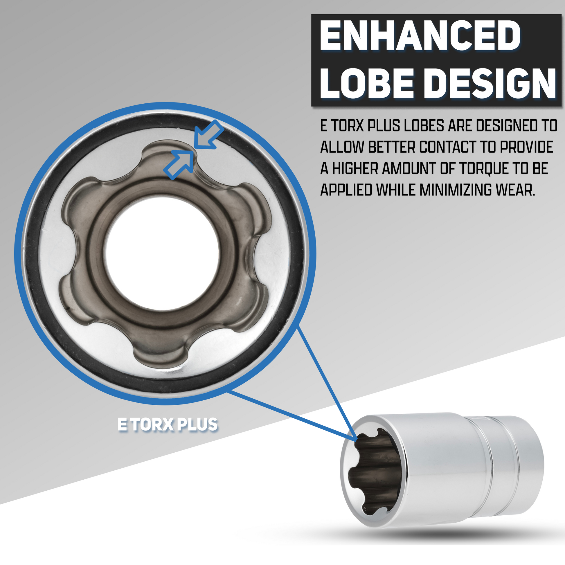 - [INCLUDES]: This external torx plus socket kit has sizes: 1/4-Inch EP 6, EP7, EP8, 3/8-Inch EP10, EP11, E12, EP14, EP16, and 1/2-Inch EP18, EP24.