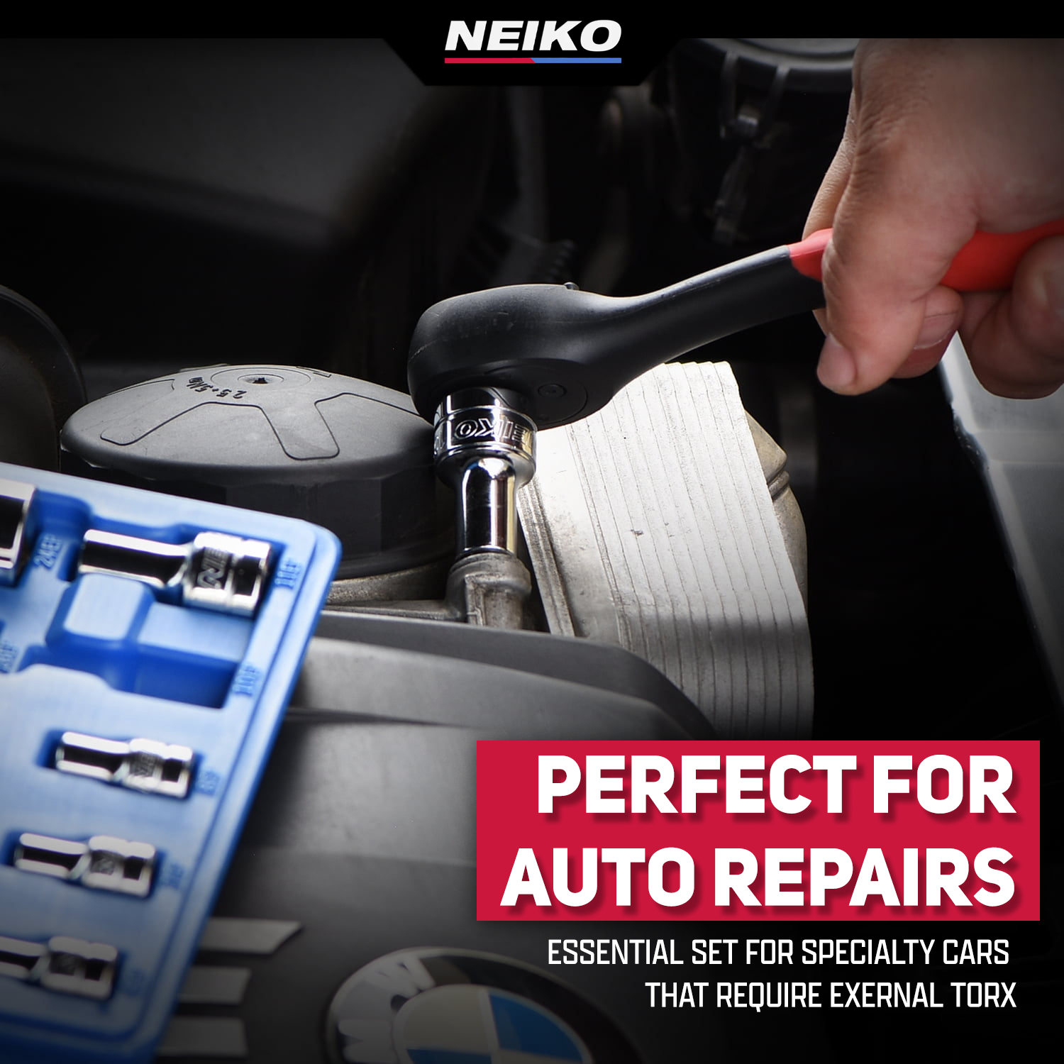 NEIKO 02473A External Torx Plus Socket Set,10 Piece | 1/4-Inch EP6 - EP8, 3/8-Inch EP10 - EP16, 1/2-Inch Square Drive EP18 and EP24 | CR-V Steel
