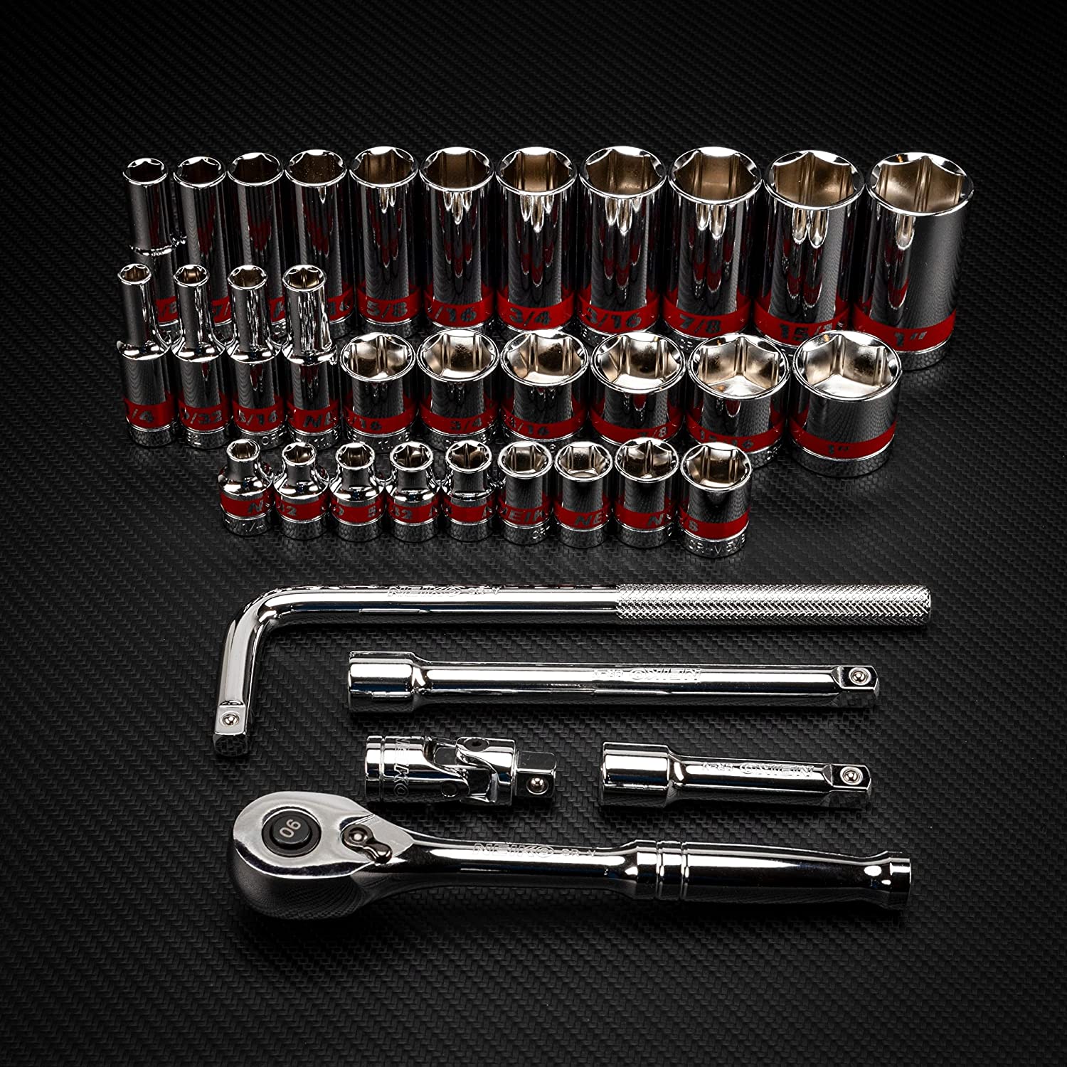 3/8” Drive Socket Set with Quick Release Ratchet (90 Tooth) Standard & Deep SAE Sizes (35-Piece)