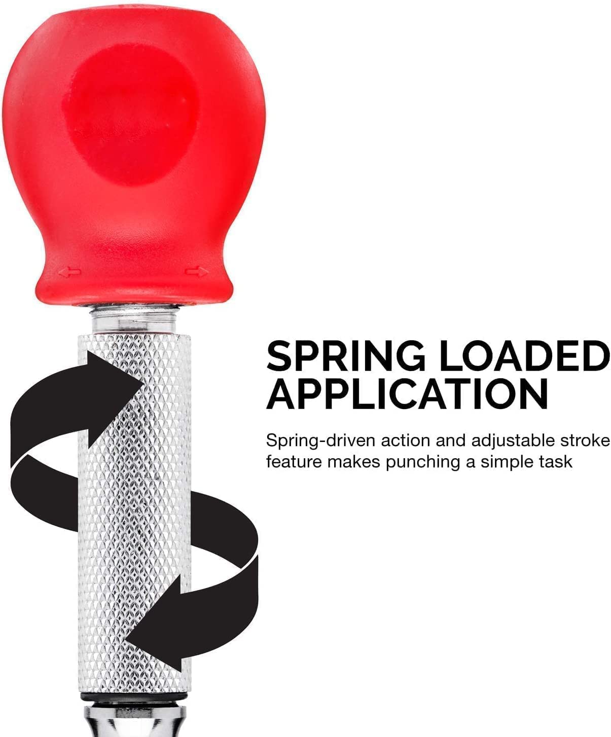 One-Hand Operation Spring-loaded mechanism activates with a firm downward push. No hammer needed. Chrome-plated shank body resists corrosion from oil and grime.