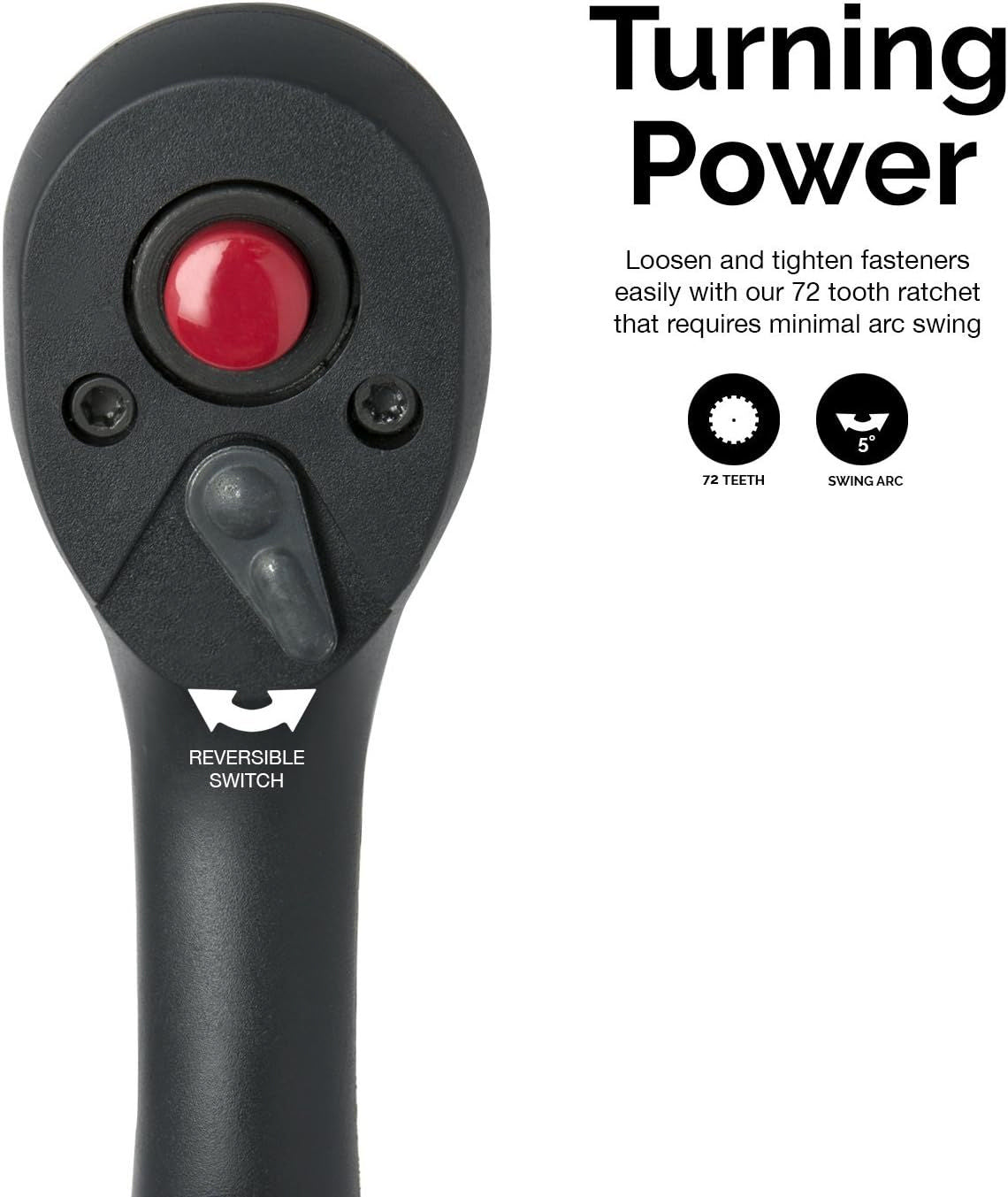 72-Tooth, 5° Swing Arc Fine-geared mechanism turns fasteners in the tightest confined spaces. Fast, efficient ratcheting with minimal hand movement.