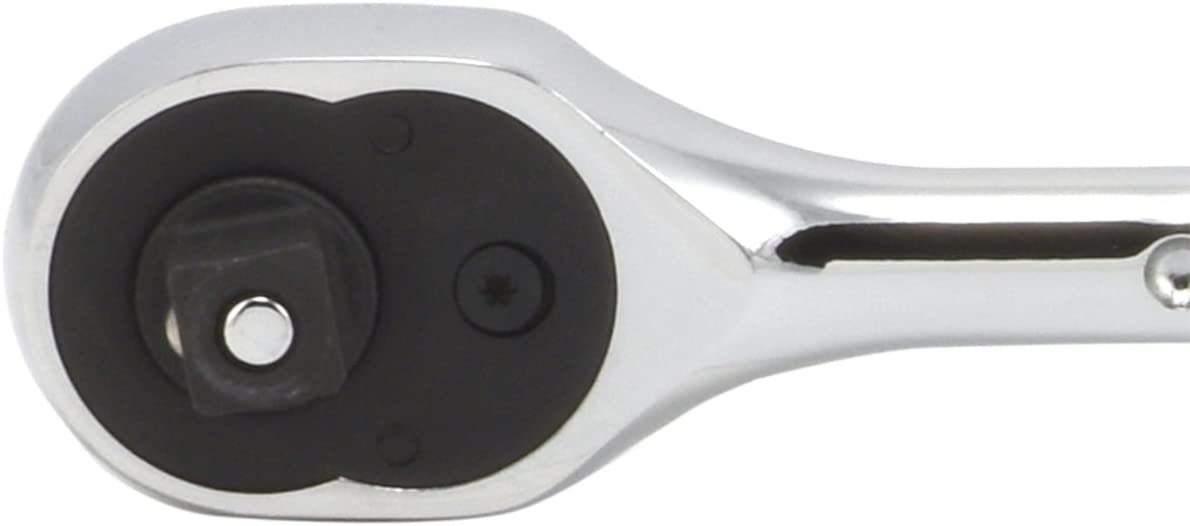 72-Tooth, 5° Swing Arc Fine-geared mechanism works in the tightest spaces. Quick-release drive head for fast socket changes. Fully reversible with one-finger thumb lever.