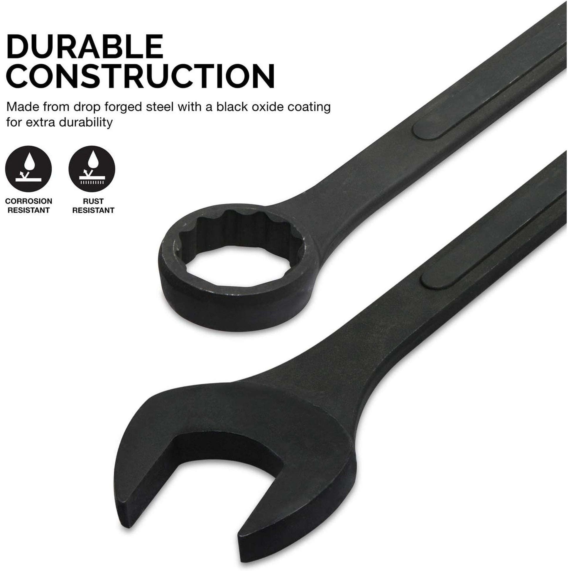 Drop-Forged, Heat-Treated Steel Black oxide finish on heavy-gauge forged steel. Built for the torque demands of oversized fasteners where failure isn't an option.