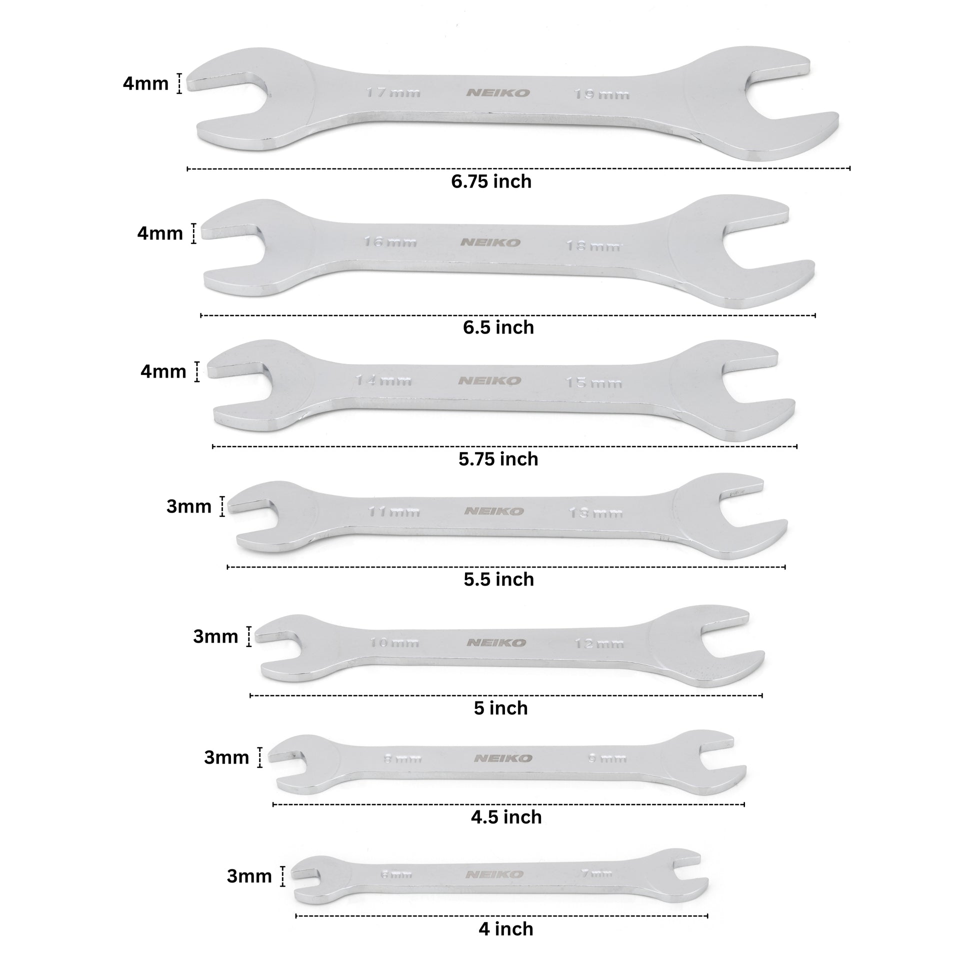 Super Thin Wrench Set, 3-4mm Thick Metric Sizes 6-19mm (7-Piece)