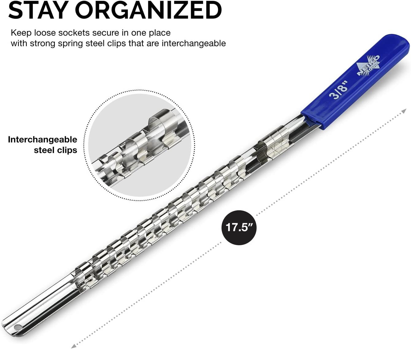 Socket Holder & Socket Organizer Tray for Toolboxes with Lightweight & Heavy-Duty Socket Rails (3-Piece)