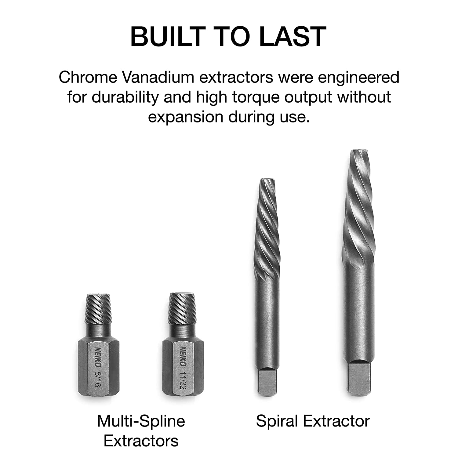 Stripped screws, broken bolts, and headless fasteners don't have to mean a trip to the machine shop. This 55-piece master extraction set includes HSS drill bits, spiral screw extractors, multi-spline extractors, drill bit guides, extractor pins, and nut extractors — everything to drill, grip, and back out damaged fasteners.