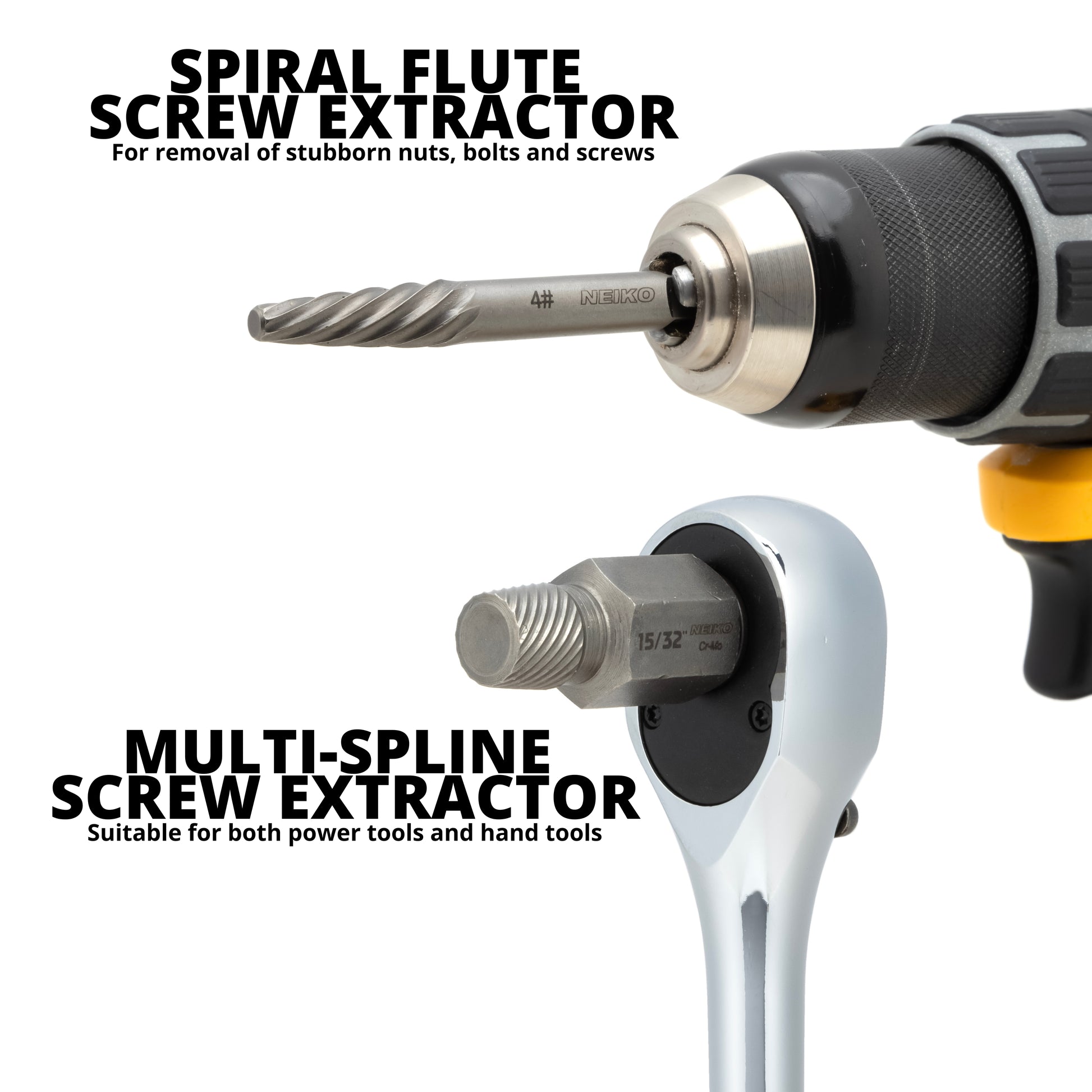 - MULTI-SPLINE SCREW EXTRACTORS: The inner reverse spiral design provides a maximum grip for those stubborn bolts making this a stud extractor, screw extractor and a lug nut remover so there is no more need for a induction heater bolt removal!