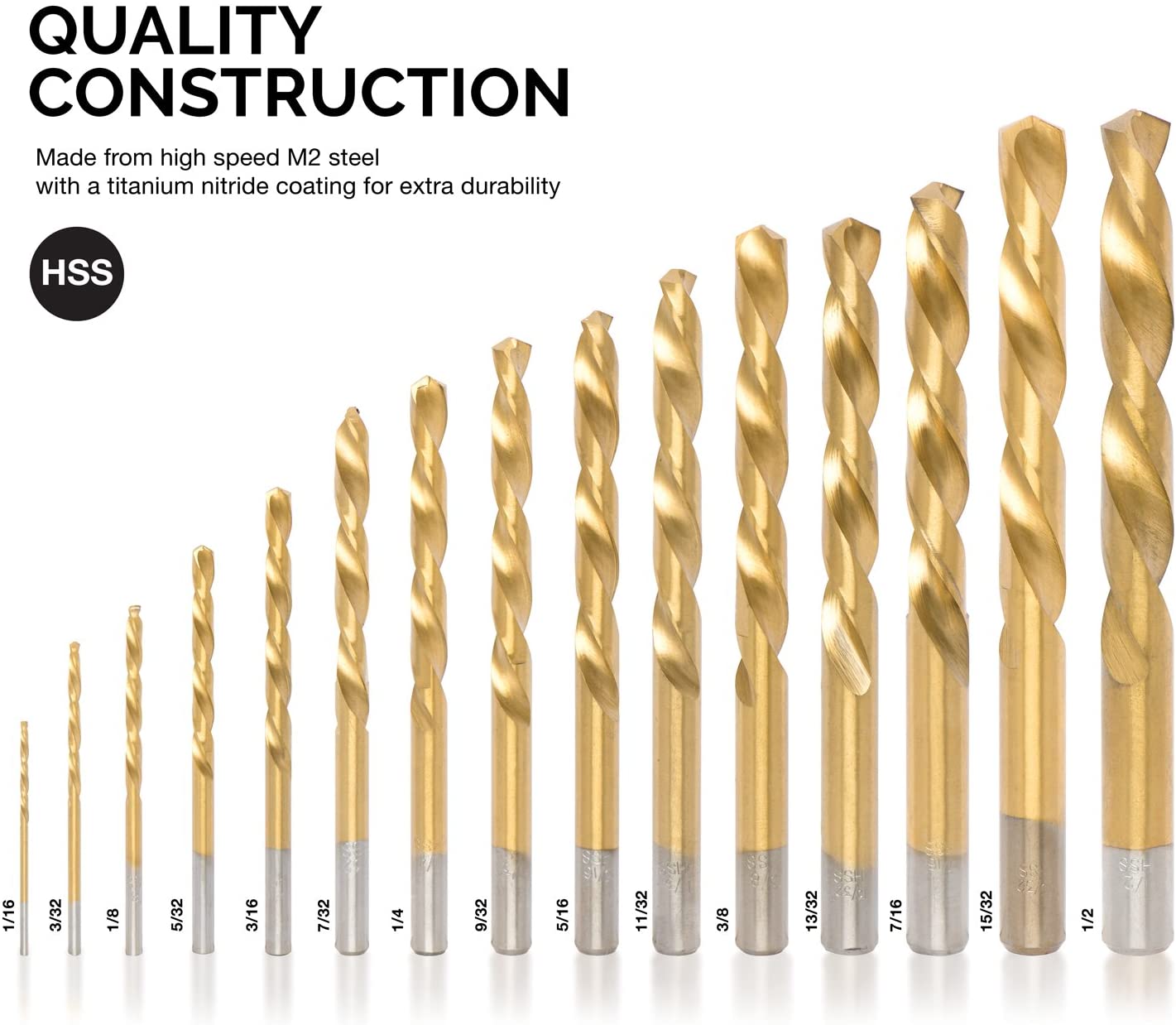 Left-Hand Drill-Bit Set, High-Speed Steel Drills with Titanium Nitride Coating (15-Piece)