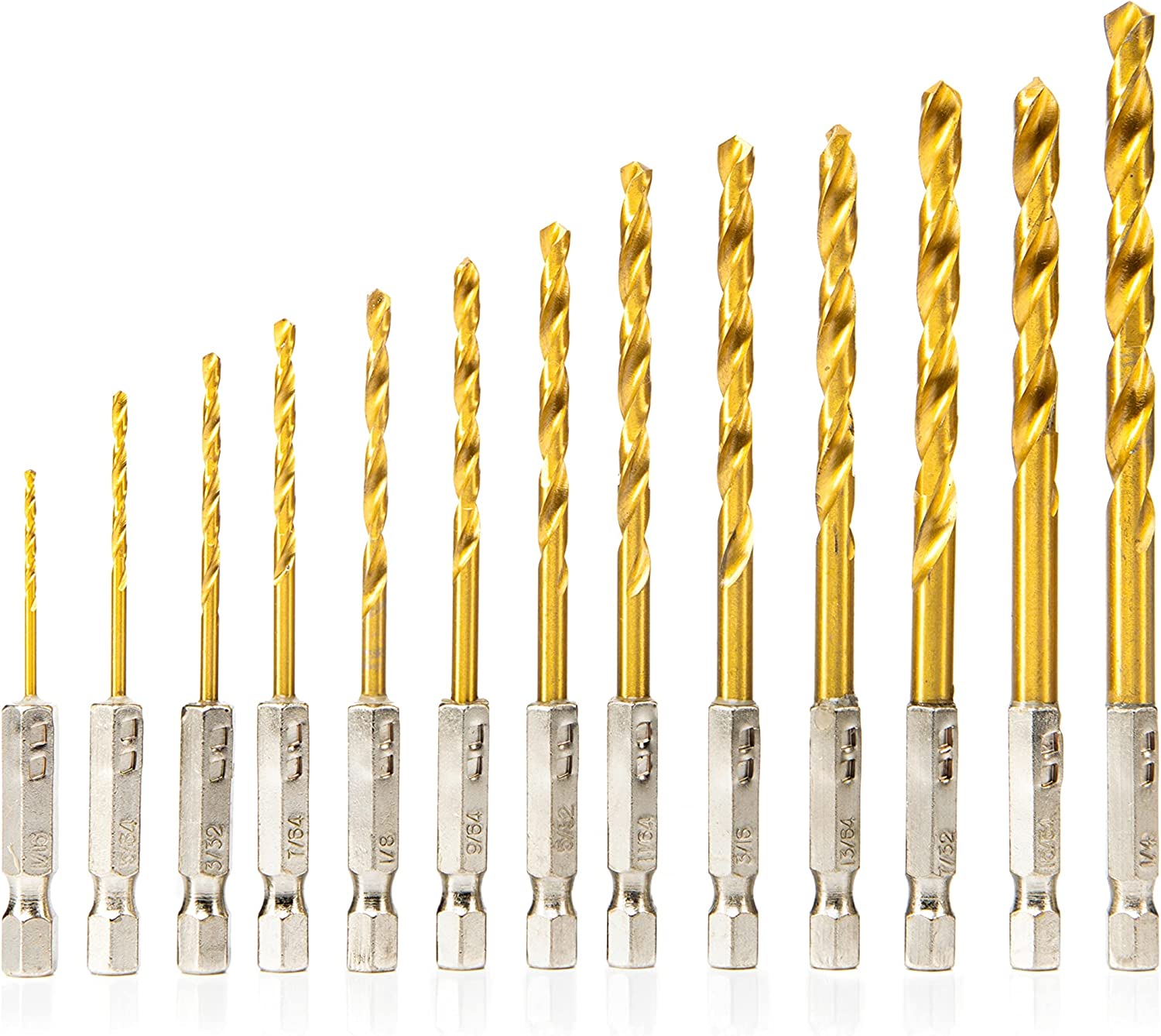Hex-Shank Drill-Bit Set, Titanium Quick-Change Drill Bits, High-Speed Steel, Wood, Metal (13-Piece)