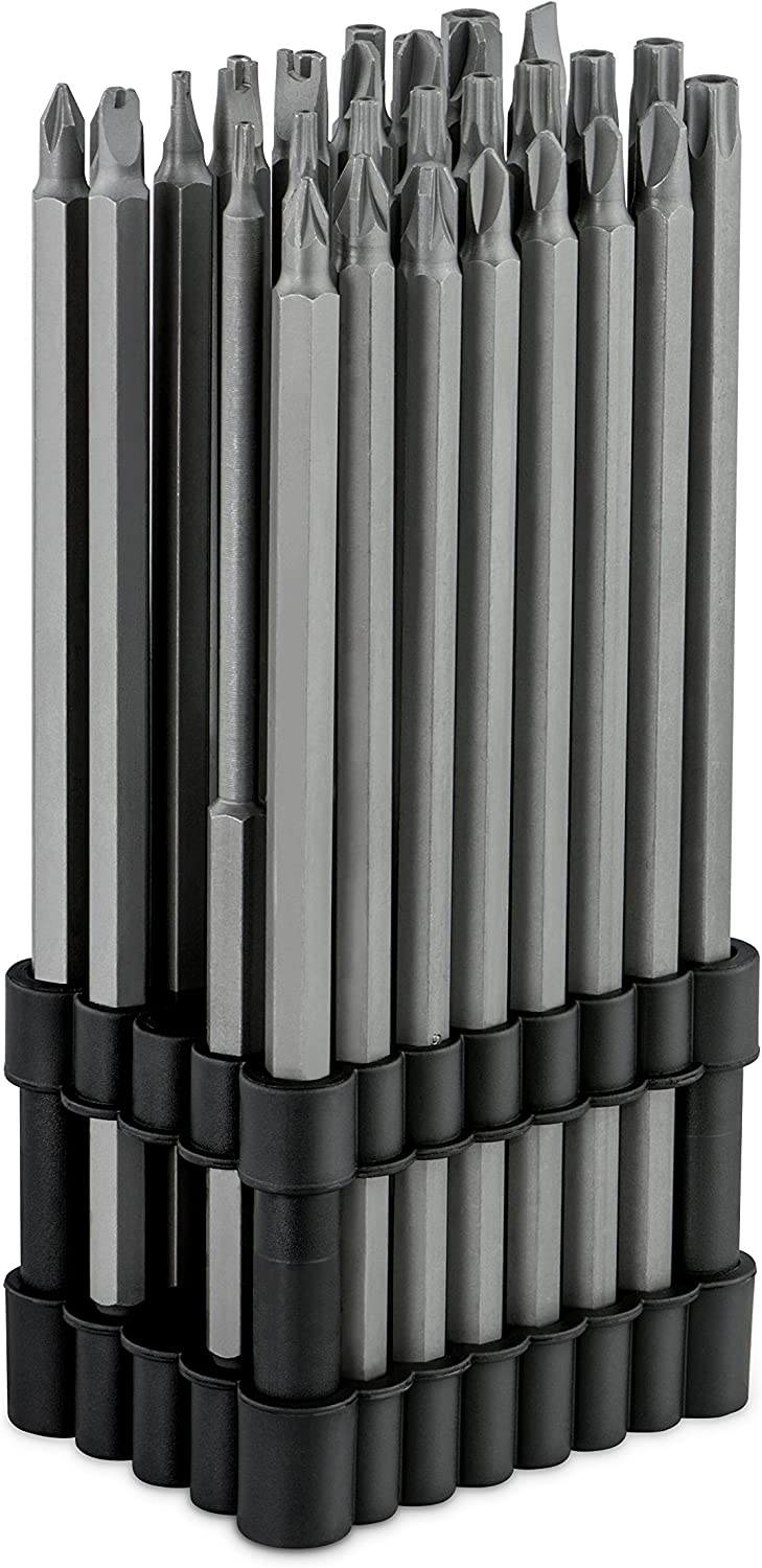 - PRECISION MACHINED BITS: Each piece in this screw bit set is an extra-long bit set is finely crafted and precisely machined for accurate size. The chamfered bit ends insert smoothly into fasteners and protect both the bits and the fasteners from damaged edges.