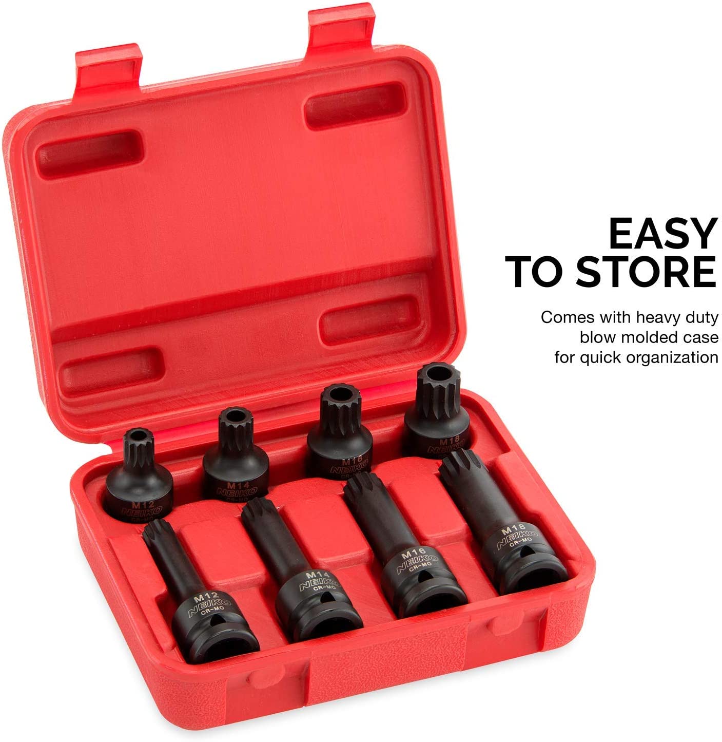 XZN Triple Square Spline Socket Set Heavy Duty Impact Cr-Mo Steel, Tamper Proof (M12 - M18) (8-Piece)