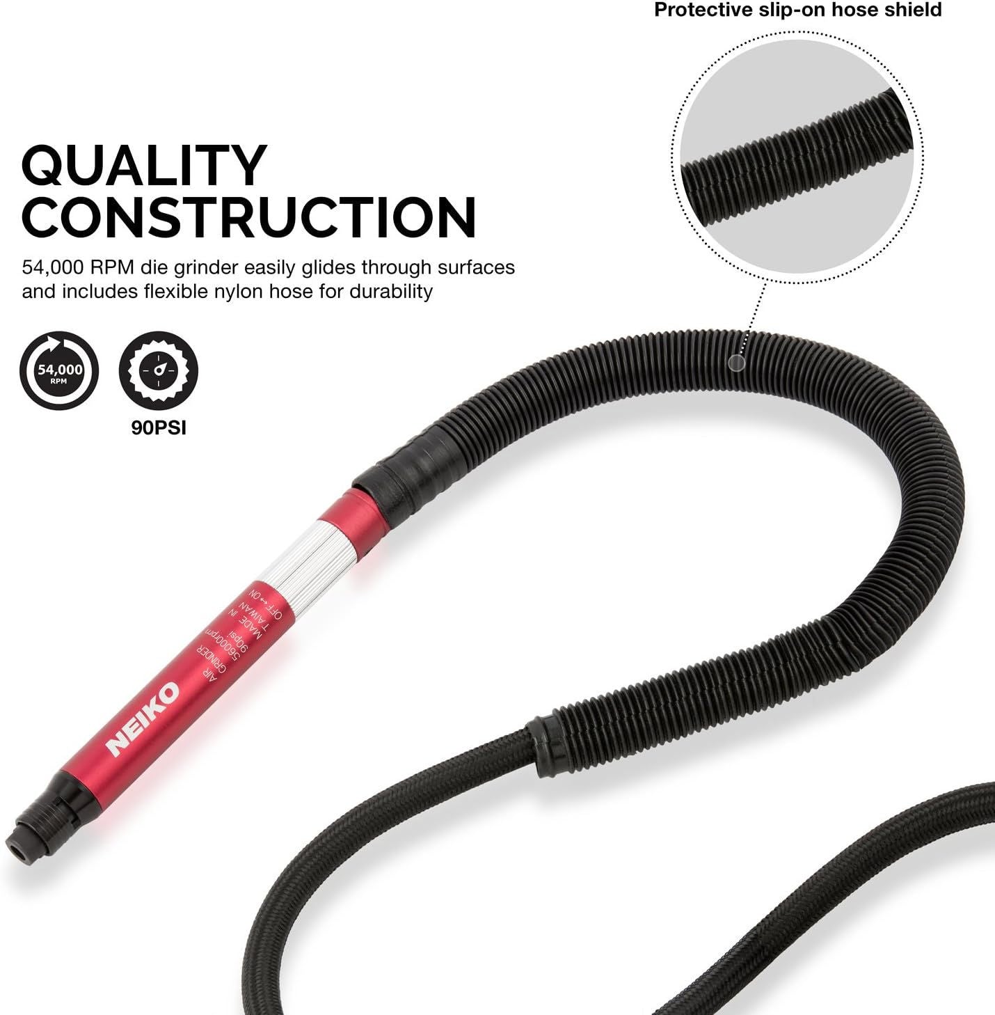 - MICRO AIR DIE GRINDER: Glides through surfaces with a free air speed of 54,000 RPM and air pressure of 90 PSI in conjunction with an air compressor.