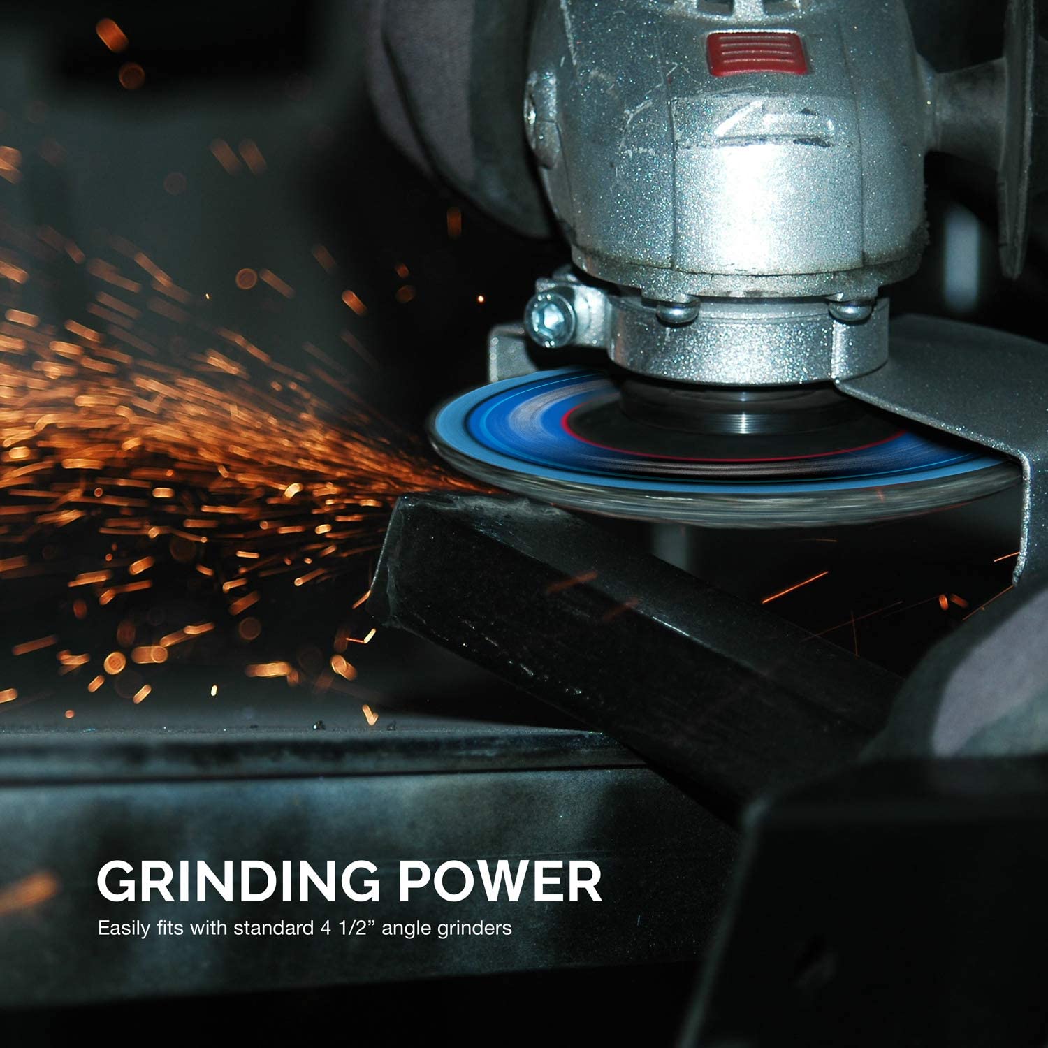 13,300 RPM Max 4-1/2" × 7/8" arbor. Fiberglass backing absorbs vibrations.