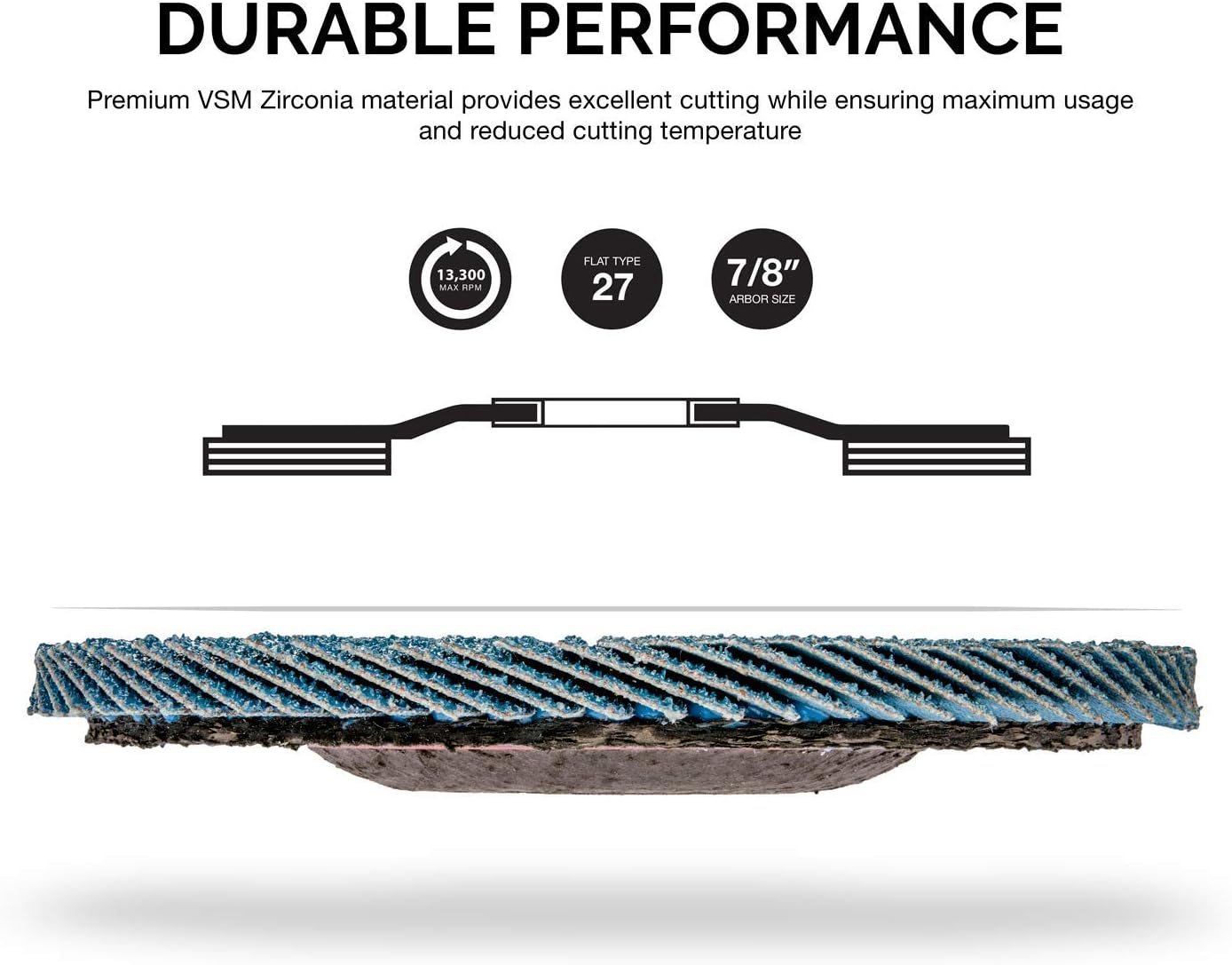 - [DURABLE]: 10 Abrasive wheels constructed of premium German VSM zirconia that keeps temperatures lower increasing durability and disc life.