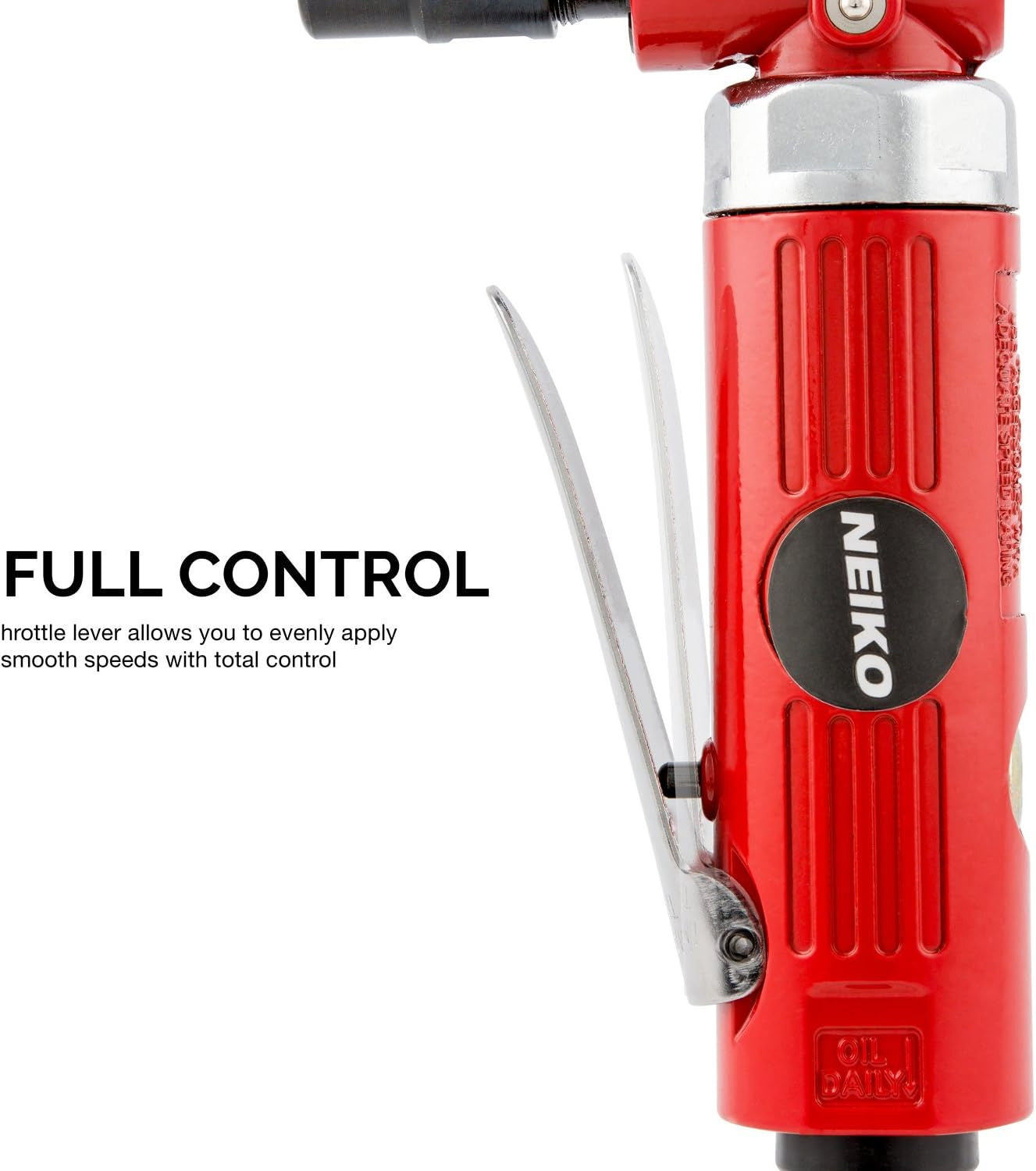 - [FEATURES]: Built-in air regulator can be adjusted with flathead screwdriver or included hex key wrench and comes with a paddle lever throttle that allows feathering control to apply smooth speeds evenly.