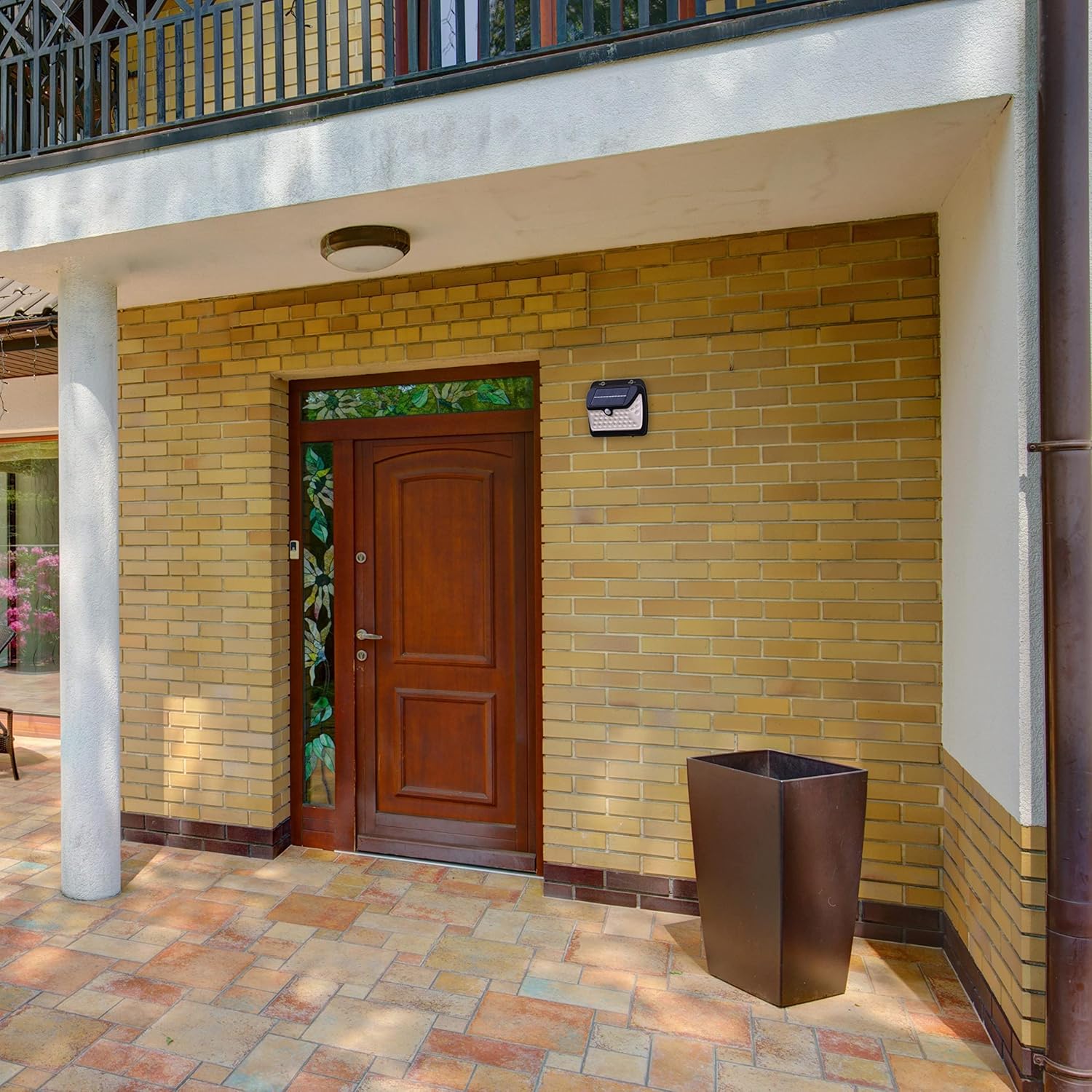 PIR Motion Detection 120° wide-angle sensor activates from up to 16 feet. Deters unwanted visitors and wildlife. Auto-off after 20 seconds of no movement.