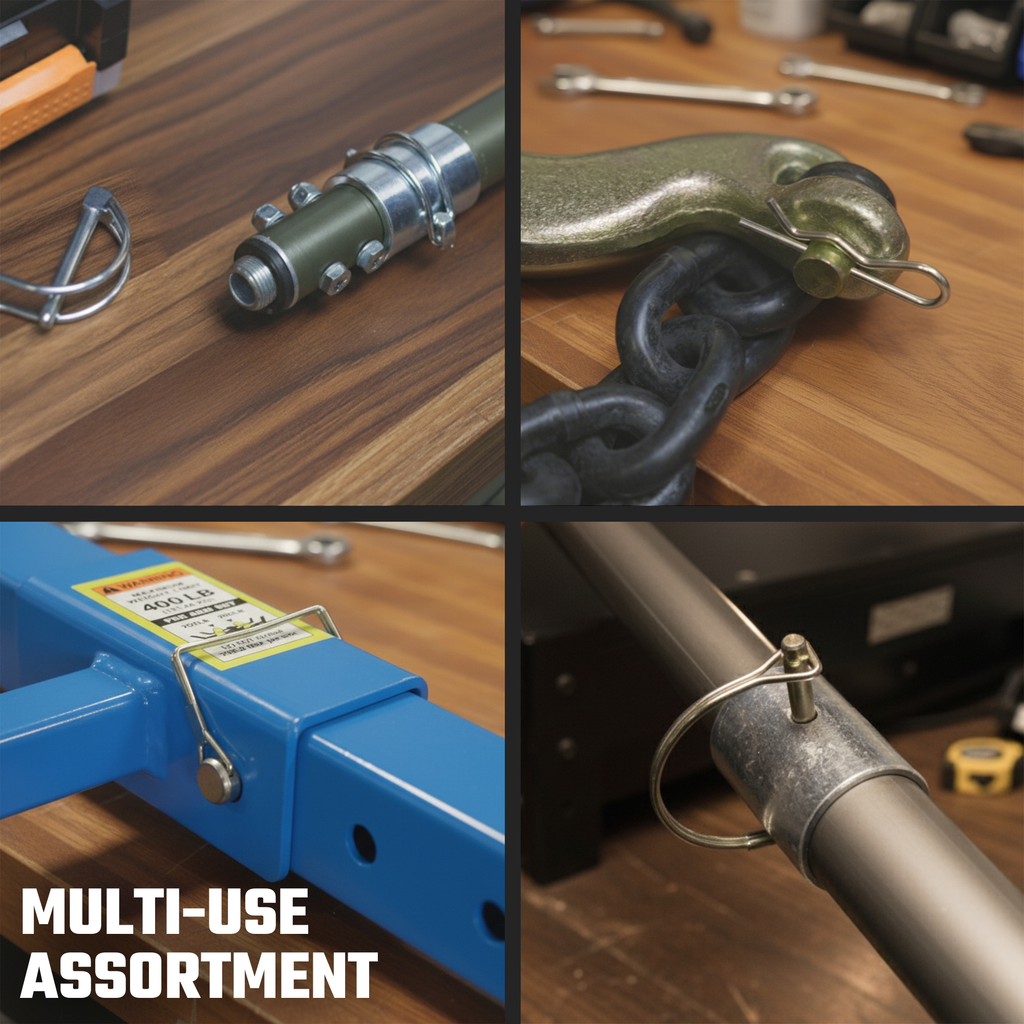 • TRAILER PINS: Versatile and almost universal safety pins, ideal for securing various equipment with hitch pins; includes a comprehensive pin kit, perfect for locking pins to ensure safety during use.