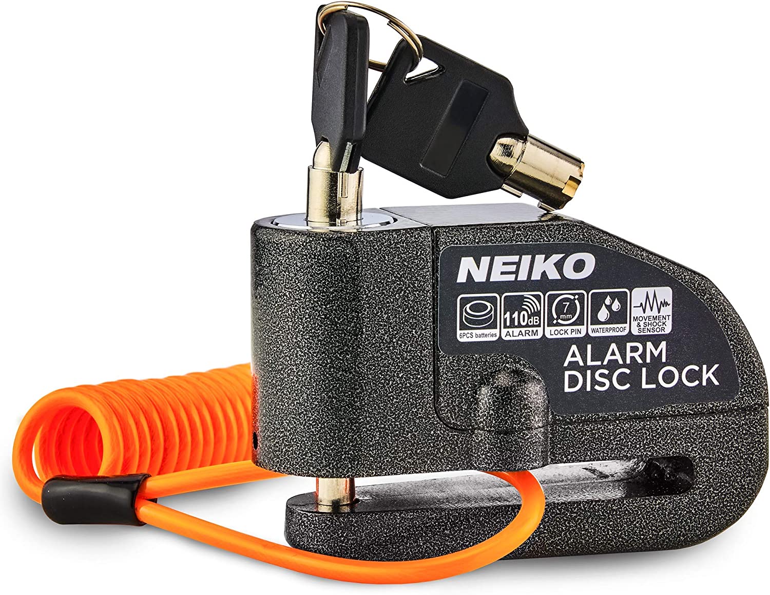 NEIKO 52908A Motorcycle Wheel Disc Brake Lock with Alarm | Up to 110db Sound Alarm | Anti-Theft Motion Sensor Security | Universal Brake Rotors Padlock for Motorcycles, Bicycles, Scooters, and More