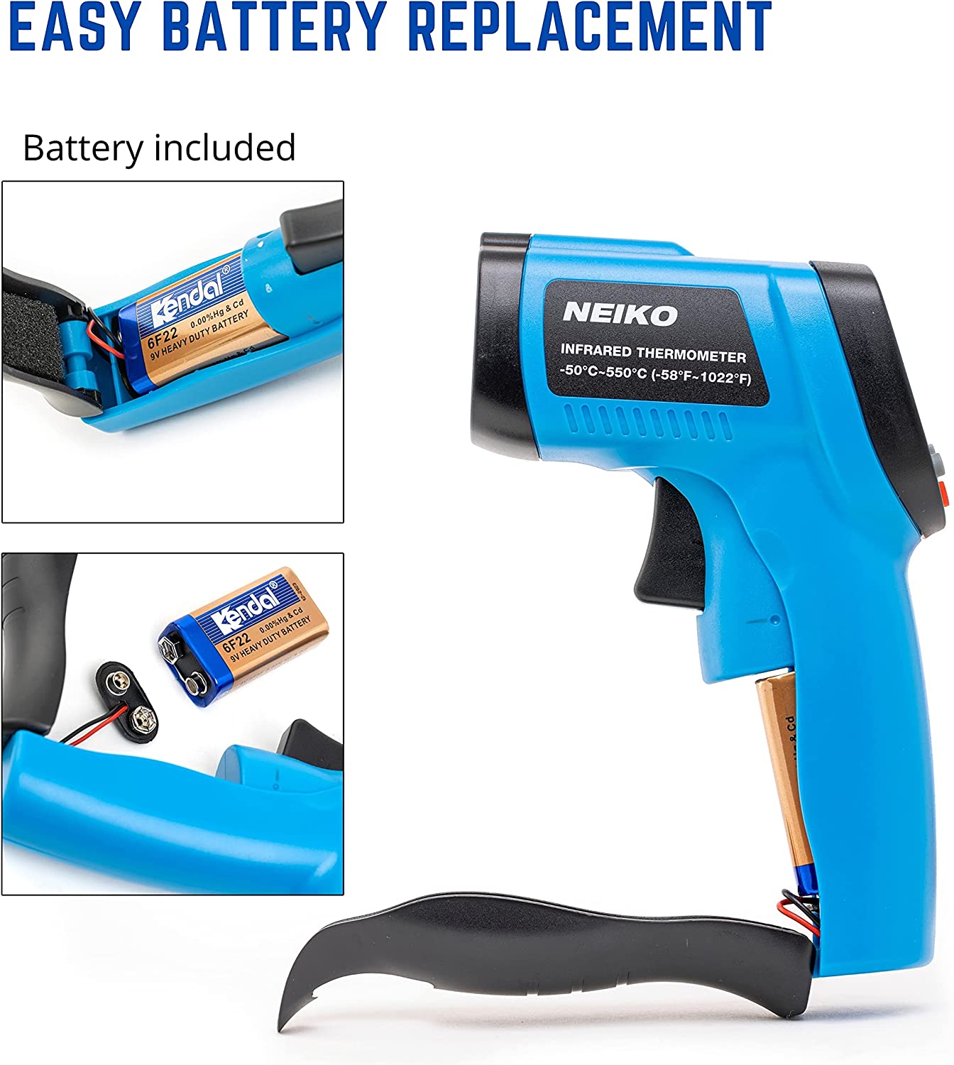 NEIKO 52911A Digital Infrared Thermometer, Non Contact Gun, Instant Read -58℉~1022℉ (-50℃~550℃) Infrared Thermometer Gun, Thermal Heat Temperature Gun, Laser Thermometer Gun, NOT for Humans