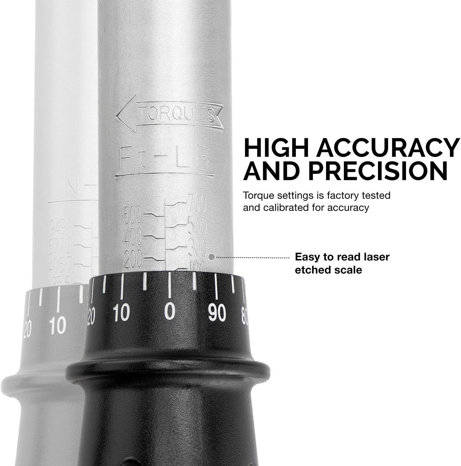 - LONG-HANDLED TOOL: The wrench click stick has a 48-inch length, making it easy to loosen tough bolts at high torque settings in a range of 100 to 700 ft-lb. The handle of this wrench tool has a soft, firm grip for easy turning and pulling.