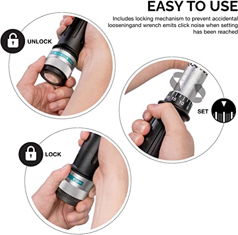 - TORQUE RATCHET WRENCH: This inch-pound torque wrench and ratchet tool features a reversible function with a locking and unlocking adjustment. It also has an adjustable clicker that lets you select from the easy-to-read torque value scale.